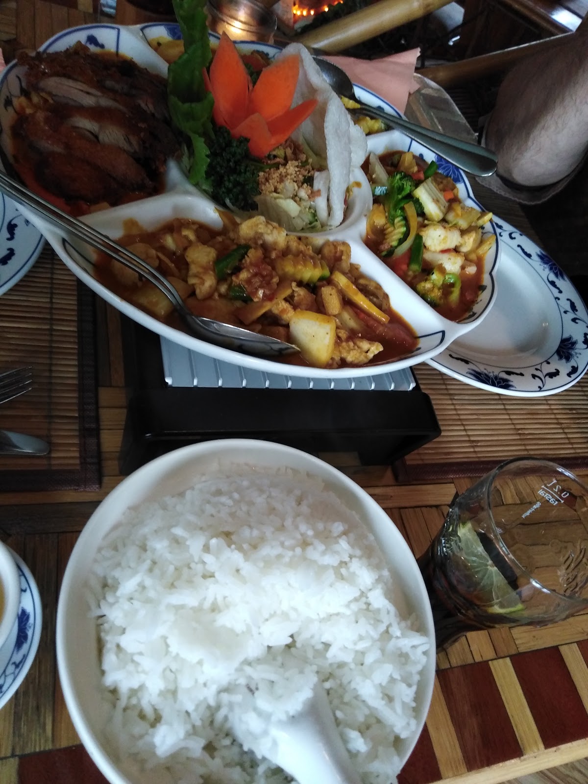 We took the curry menu for two. We Chose soup for appetizer. And Roast Banana for dessert. The menu for two is very large. I Like to try something new. Definitely something with a duck. Excellent service and see you again.