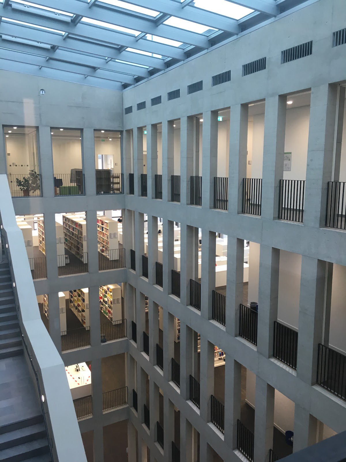 Mir hat die neue Bibliothek immer sehr gut gefallen, sowohl von der modernen Optik als auch vom Arbeitsklima. Im Bereich Sozialwissenschaften sind die meisten Bücher vorhanden oder digital verfügbar. Per Beschaffungswunsch konnten auch aktuelle Bücher, die ich für meine Bachelorarbeit benötigte, aber nicht vorhanden waren, in den meisten Fällen angeschafft werden. Das Personal begegnete mir stets freundlich und hilfsbereit. Während der Prüfungszeit empfiehlt es sich relativ früh/spät zu kommen oder einen Platz zu reservieren, da es zu den Hauptbesuchszeiten schon sehr voll werden kann. Großer Pluspunkt: auch bei nahezu 40 Grad Außentemperatur war es im Inneren sehr angenehme temperiert. Die Mensa ist ebenfalls direkt vor der Tür. Ein sehr guter Ort zum lernen und schreiben!