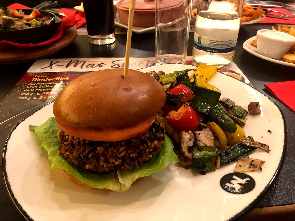 This place was a complete joke. Horrible service. Some of our party got their main course before being done with the starter. The dishes from the starters was not cleared at all. Ordered a steak medium rare, got it raw..... The chip in middle of the floor never got picked up. The server had the audacity to inform us that service was not included in the bill in Germany (complete lie we later found out ) and bullied us into tipping. Would not recommend