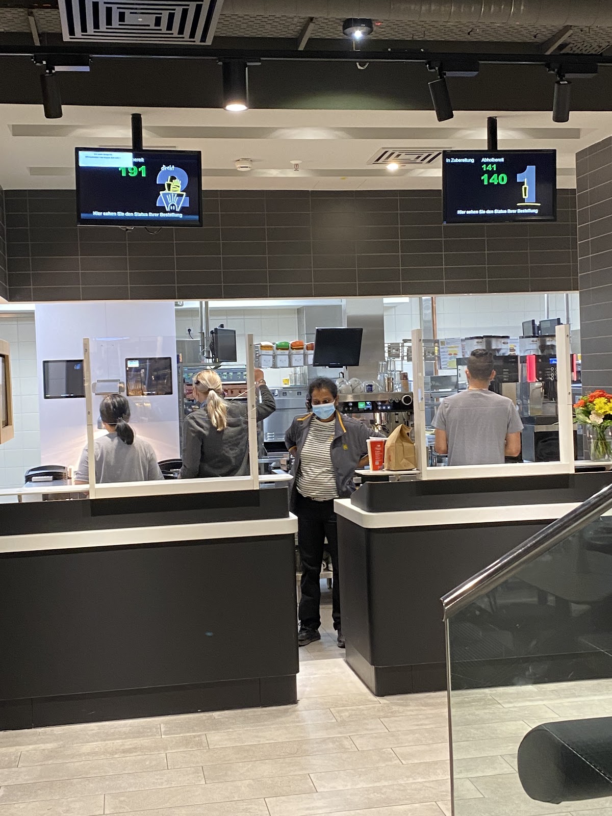 Clean big space with nice food and soccets for phone charging. Always crowded, but serving is fast. Go to second floor. There is more fresh air snd less people. Curly fries aren't fried good though (raw). Wouldn't recommend to order those.