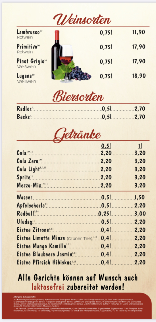 The next morning the "boss" called to inquire about my reviews, generally a nice thing, but then when I said that I paid 12 euros for something like that (pizzas were small portions), I got the answer: "He has them Prices haven't gone up yet, the pizzas would have cost me €20!And he's thrown more money out the window before!