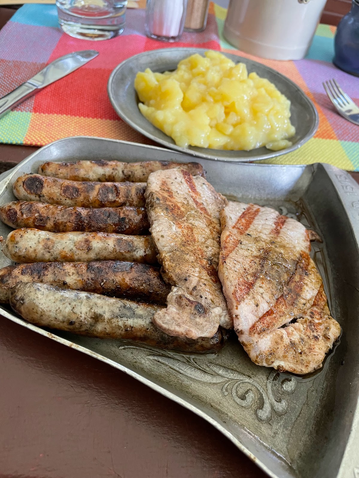 Brilliant food, I had the mixed grill with 2 pork steaks and 6 sausages with potato salad and some of a friends homemade wine sauerkraut; for dessert the hot Apple strudel with vanilla sauce was just a perfect ending to a great day exploring. Absolutely brilliant service, prompt delivery of food and a easy transaction from start to finish! I recommend!