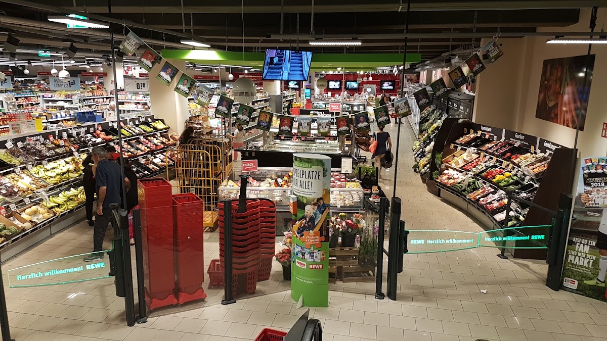 Nice location in Aufßesplatz,organized as usual rewe center ,large collection of items.very much recommend.