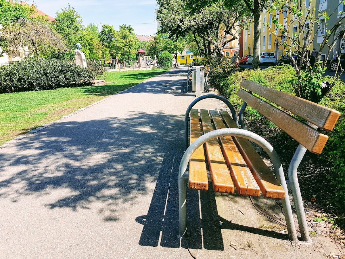 (Translated by Google) Nice, smaller green space with a few benches, a bust of Sigmund Schuckert and a nearby playground. The place is pretty clean and tidy.