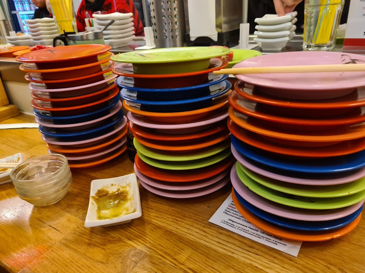 Me and my bf have finished 3 piles of sushi plate, and i think the staff annoyed hahaha
