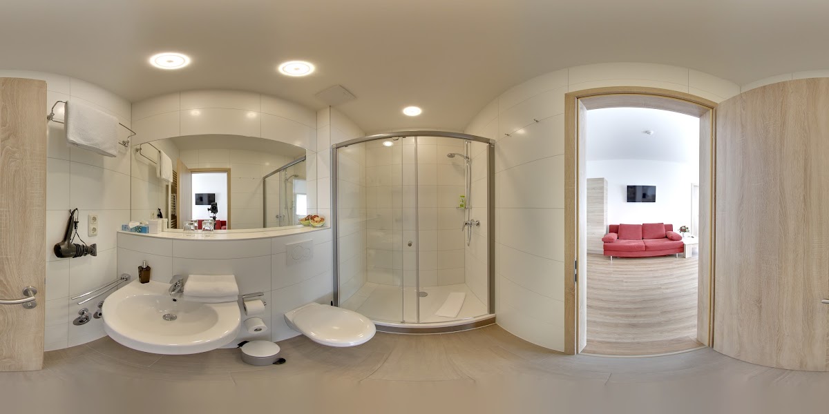 (Translated by Google) Our apartments were really big and very clean! The rooms look very new and are modern and lovingly furnished. The kitchen was fully equipped (coffee machine, toaster, oven / stove, kettle, dishwasher, refrigerator and of course dishes / cutlery, pots, etc.).