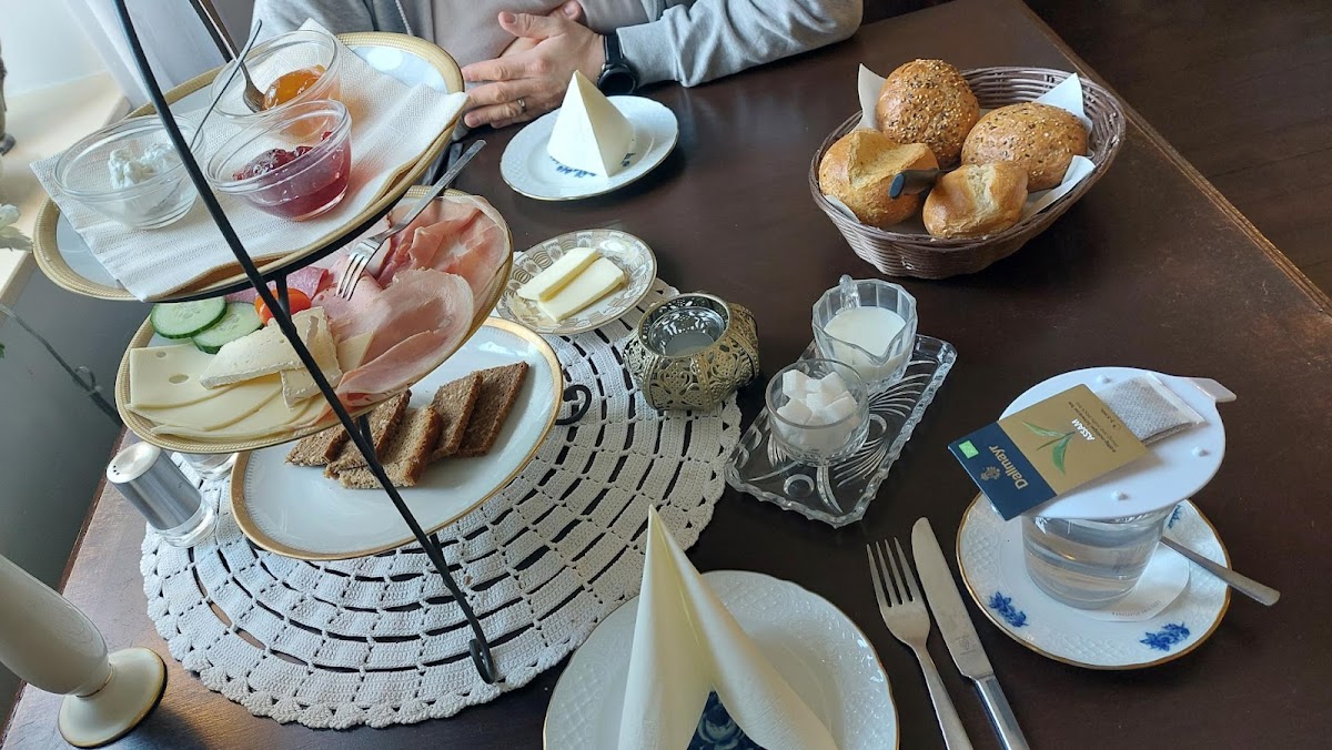(Translated by Google) Breakfast like at mother's, only better and richer! We were allowed to spontaneously enjoy breakfast on Sunday morning, although you should have reserved it. The hostess did everything to spoil us over both ears and stomachs! It was very tasty, high quality and plentiful! Including "coffee full". The price was more than fair!