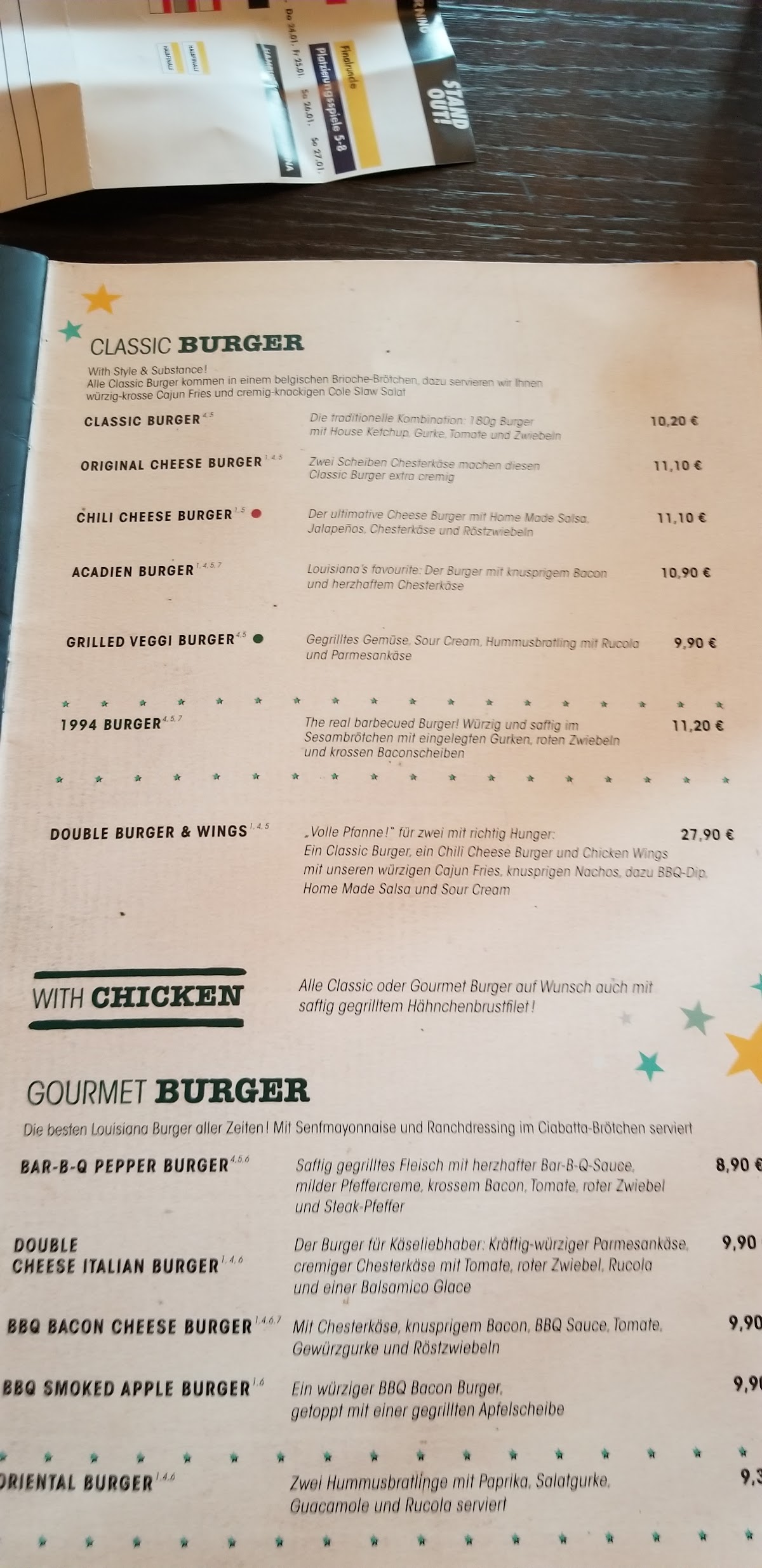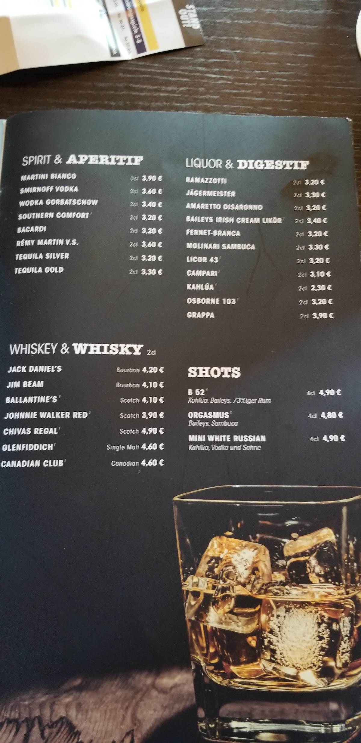 A nice range of food and drink choices; a German interpretation in a pseudo-TexMex American theme.
