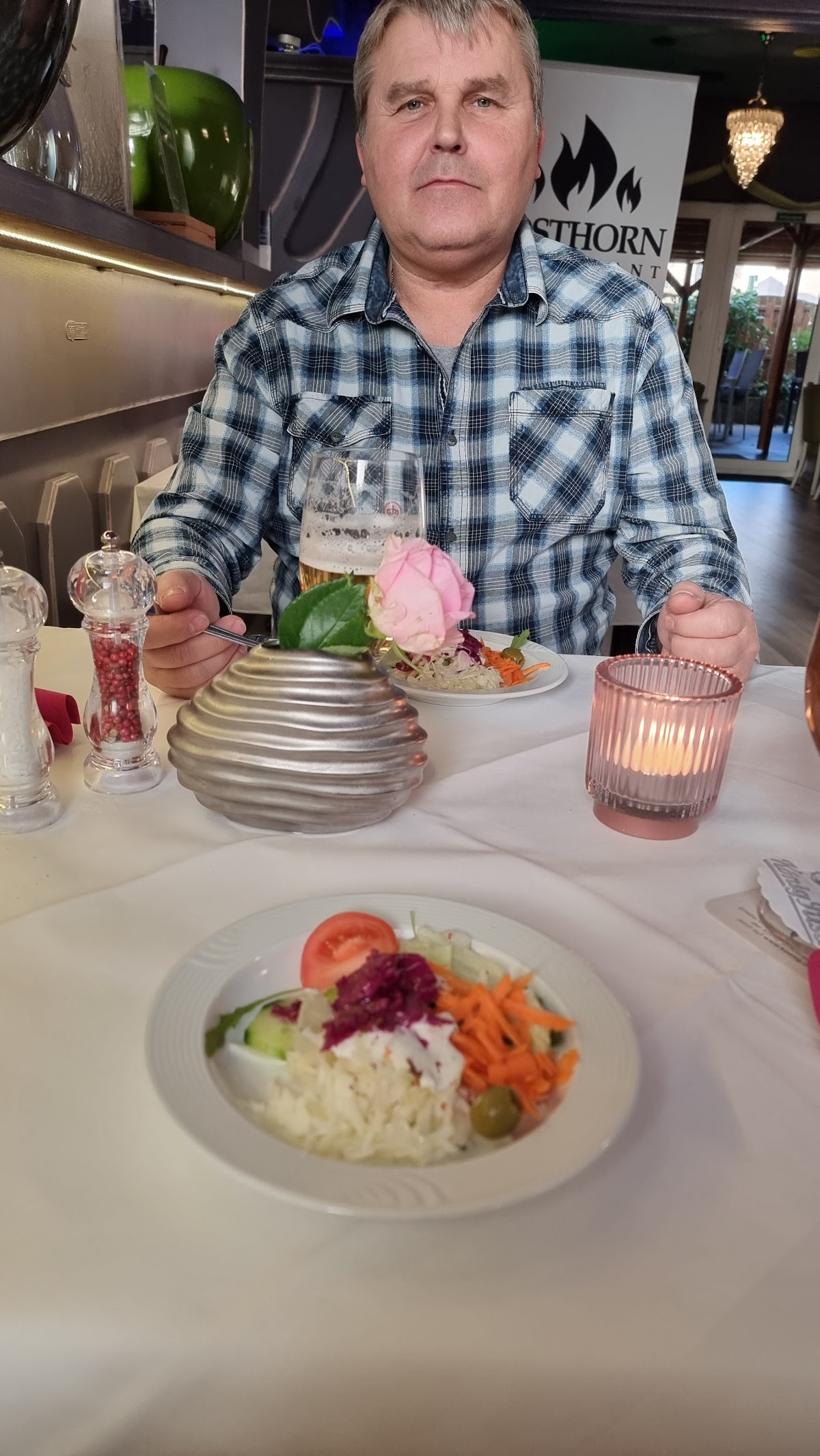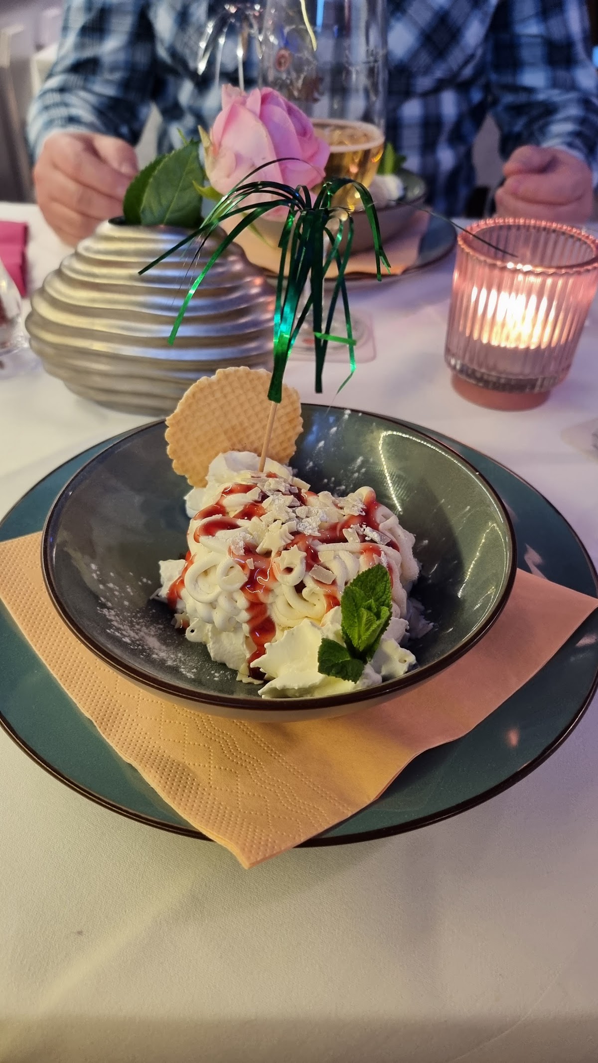 Sehr gutes Restaurant mit freundlicher professioneller Bedienung die aber nicht aufdringlich ist und stetig aus der Ferne ein gutes Auge und Gefühl hat die Lage am Tisch zu beurteilen.