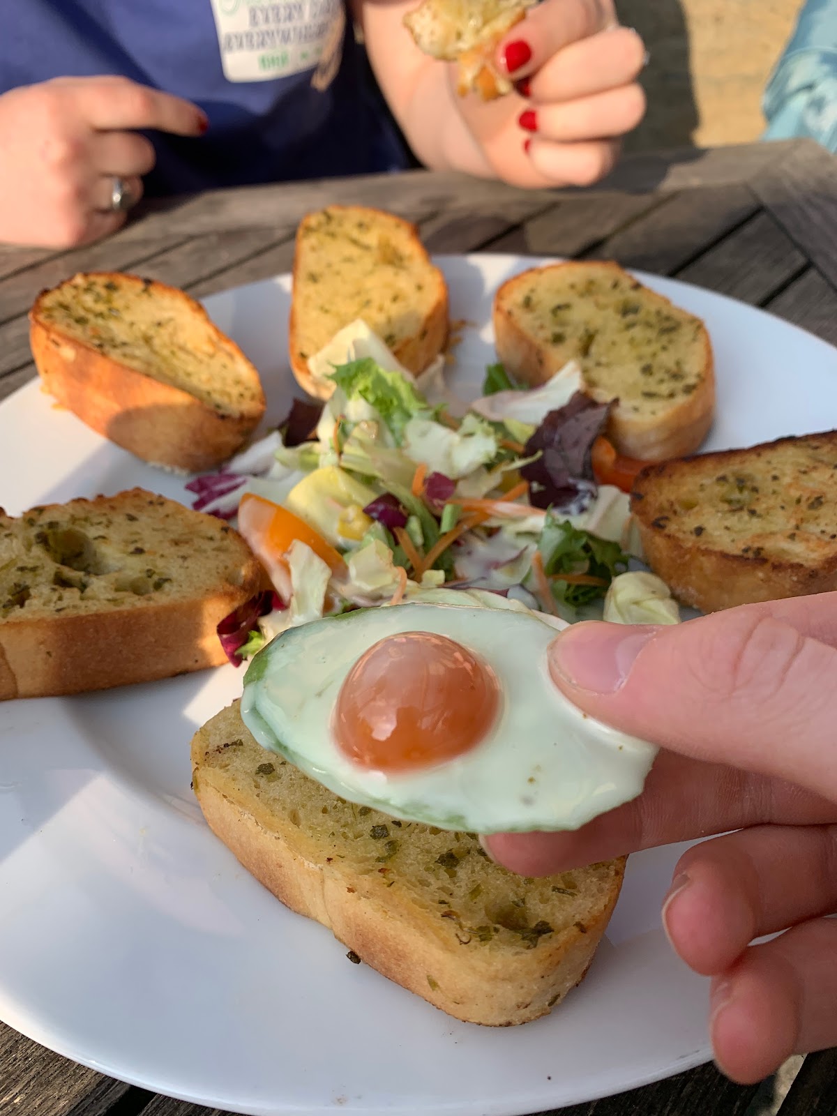 Delicious garlic bread for appetizer! Then I had the most amazing spareribs with a really good tasting ex on the beach! The sanitary was also clean!