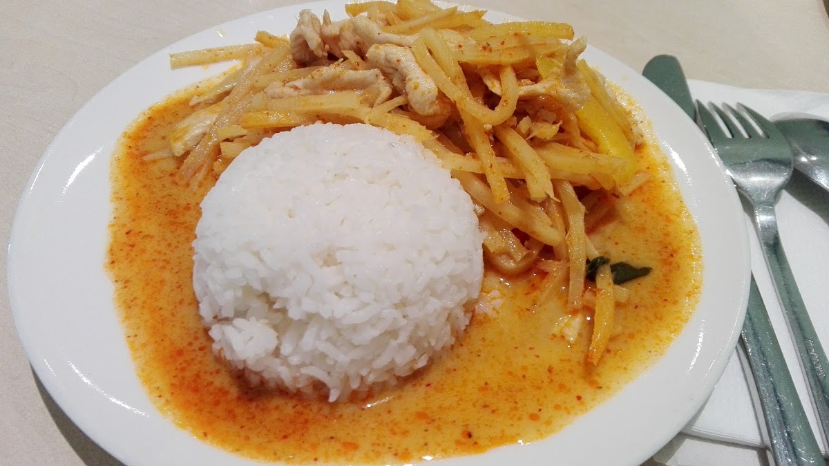 Das Preis-Leistungs-Verhältnis ist halbwegs OK (6,90 € für eine kleine Portion rotes Curry).