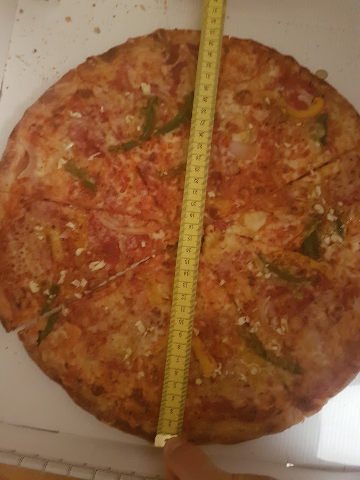 In fact, the driver arrived here 5 minutes later. Judging by the temperature, the pizza wasn't on its way for half an hour, but only these 5 minutes.... So the first information from the boss can't have been correct...
