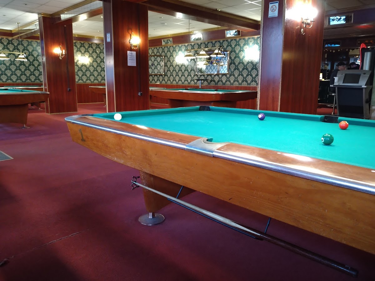 (Translated by Google) A normal billiard café. Friendly service and fair prices. A small disadvantage (but it was the same in almost all billiard cafés so far), the tables are sometimes very close to the benches and pillars. Table 2 has been the most uncomfortable to play so far.