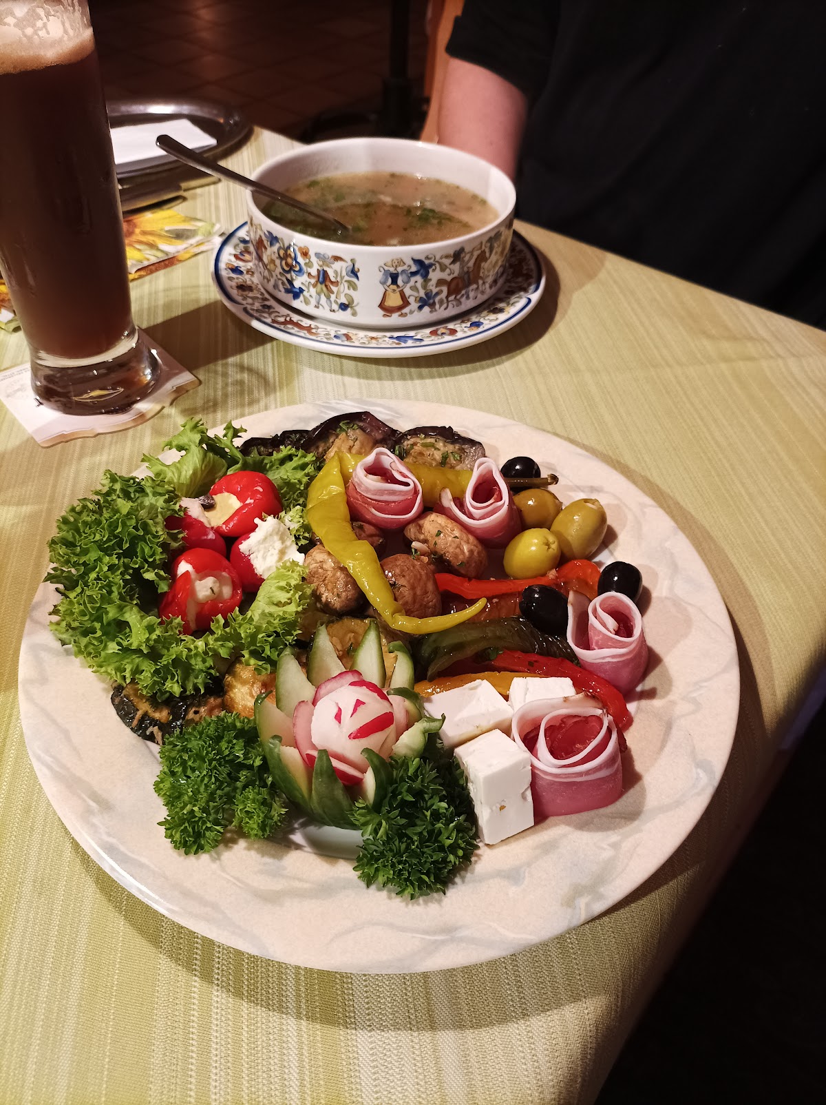 Telefonisch hatte ich einen Tisch für 10-15 Personen zum Mittagstisch vorbestellt. Vor Ort war sogar ein Séparée für uns eingedeckt. Wir wurden nett u. freundlich bedient. Das A la Carte Essen schmeckte allen sehr gut. Von leichten Kleinigkeiten (Mediterrane Vorspeisen, Salate, Schafskäse,…) über Nudelgerichte bis zu frischen Schnitzeln, alles war frisch u. gut bekömmlich. Vielen Dank!