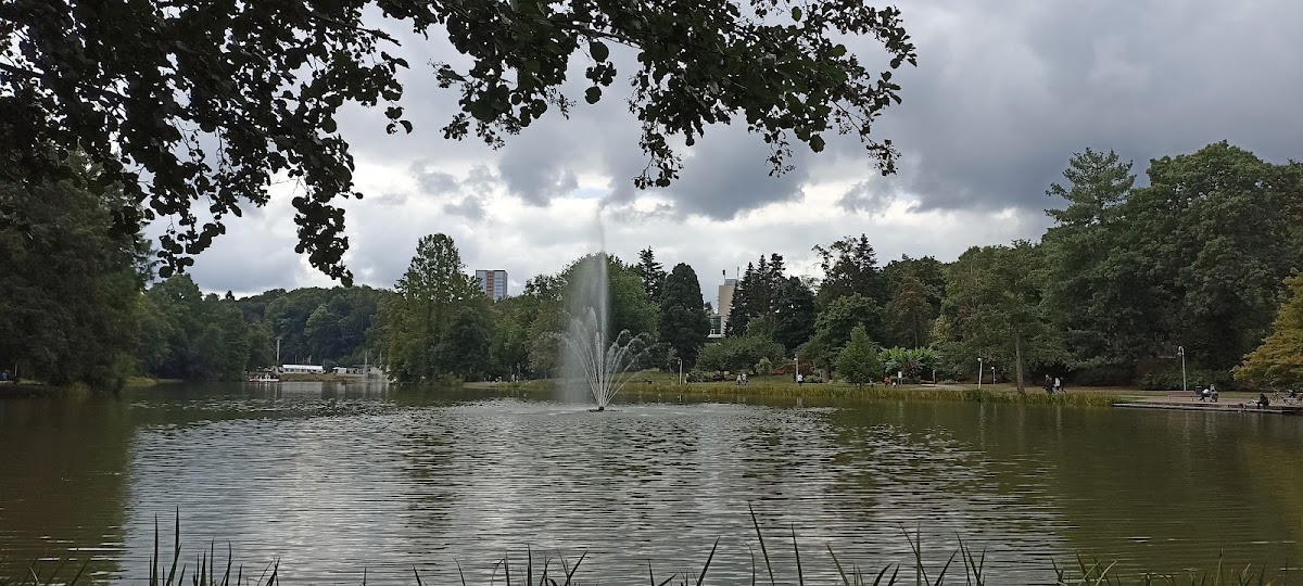 Large nice park, partially green, beautiful lake, benches. Sometimes too many people. Funny bold ducks and geese.