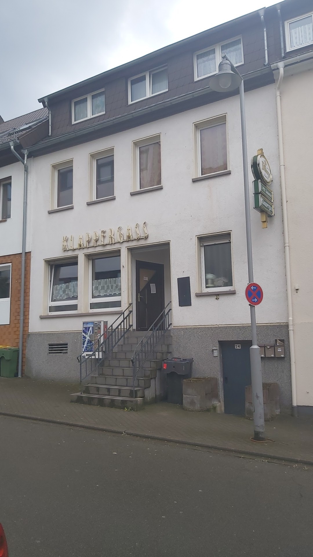 Die Fassade und dreckigen Töpfe und Lappen an der Scheibe.. total versifft...