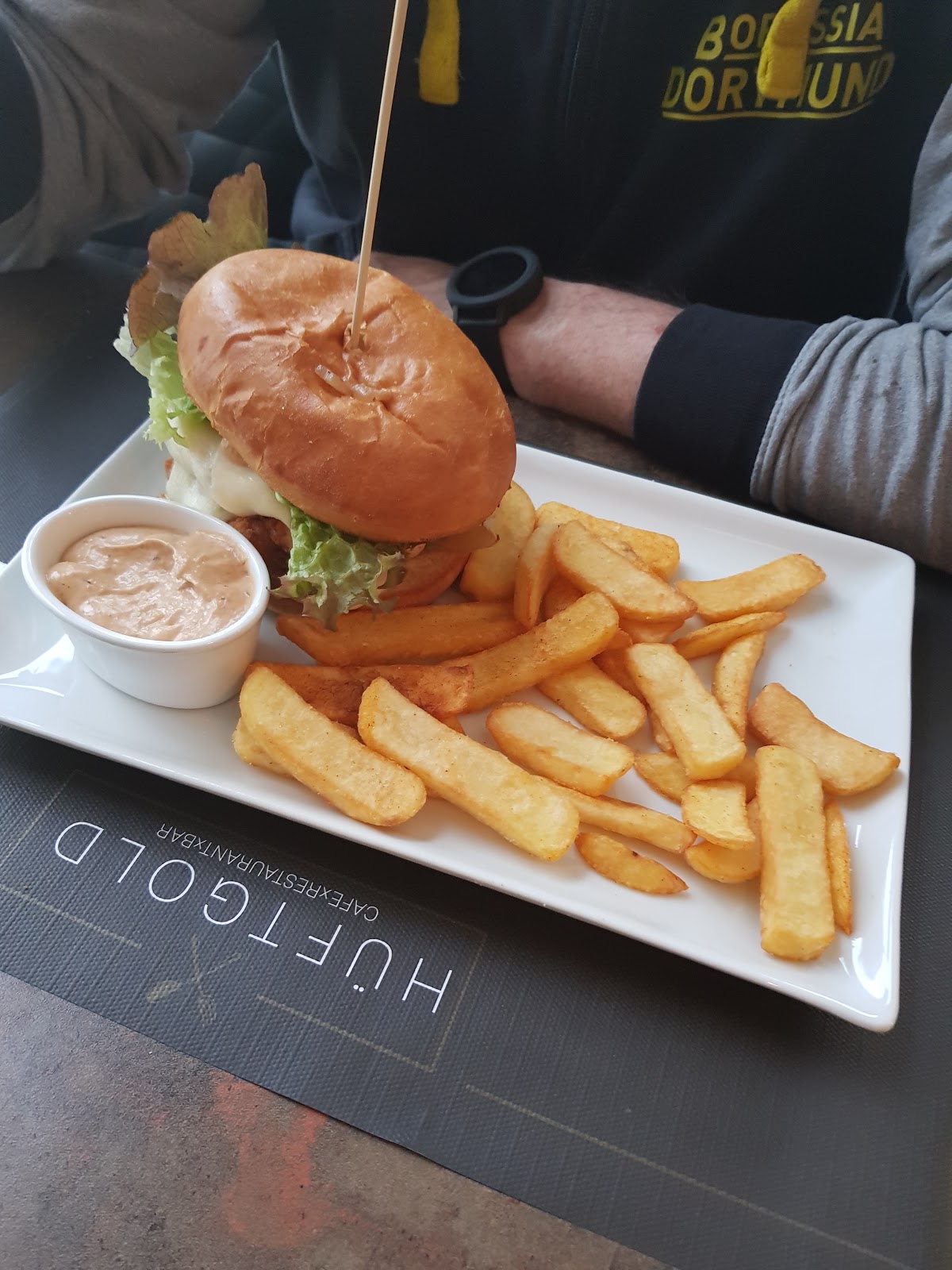 Das Hüftgold hat eine gute Lage. Parkplätze sind vorhanden. Der Hüftgoldburger war sehr gut. Die Dessertvariation ein Genuss. Das Servicepersonal war sehr zuvorkommend und ging auch sehr gut mit Änderungswünschen um. Wir kommen gerne wieder.