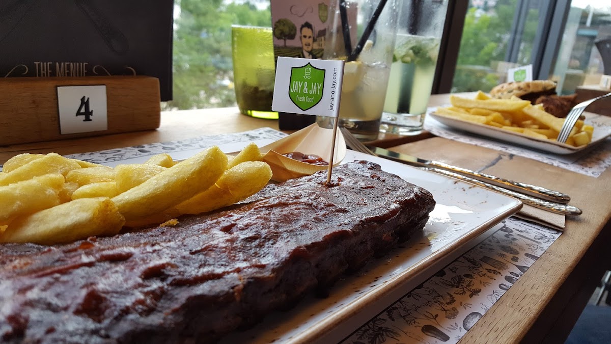 Angenehmes Ambiente, freundliches Personal, schöne Aussicht aus dem OG, ausgezeichnetes Burgerfleisch (erinnert ein bisschen an gut gewürztes Weißwurstbrät) und kräftiges Brötchen ("Bun").