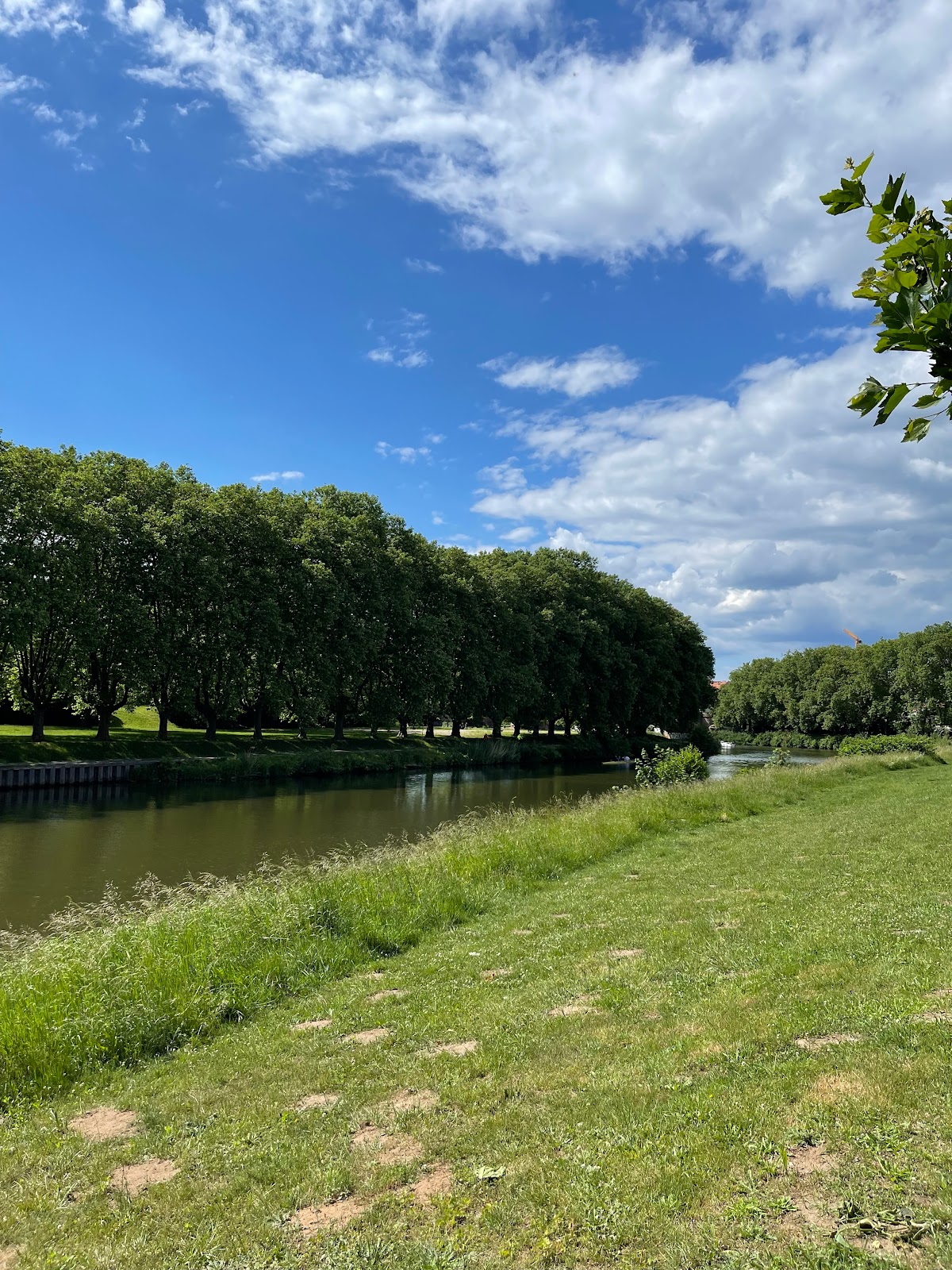 Excellent open, green space by the river in Saarbrücken. There’s a path to walk down lined with catalpa trees. The river is visible from almost everywhere. There’s a few places to grab a snack: coffee, beer, pretzel—more too. There’s a large playground for kids: an intricate maze of ropes that form a climbing area that leads to a slide, a sandbox, and a pirate ship themed area. There’s plenty of places to sit in the grass, or at a table and chairs. There’s sun, there’s shade—it’s a really great place to spend time. Recommend for everyone to visit.