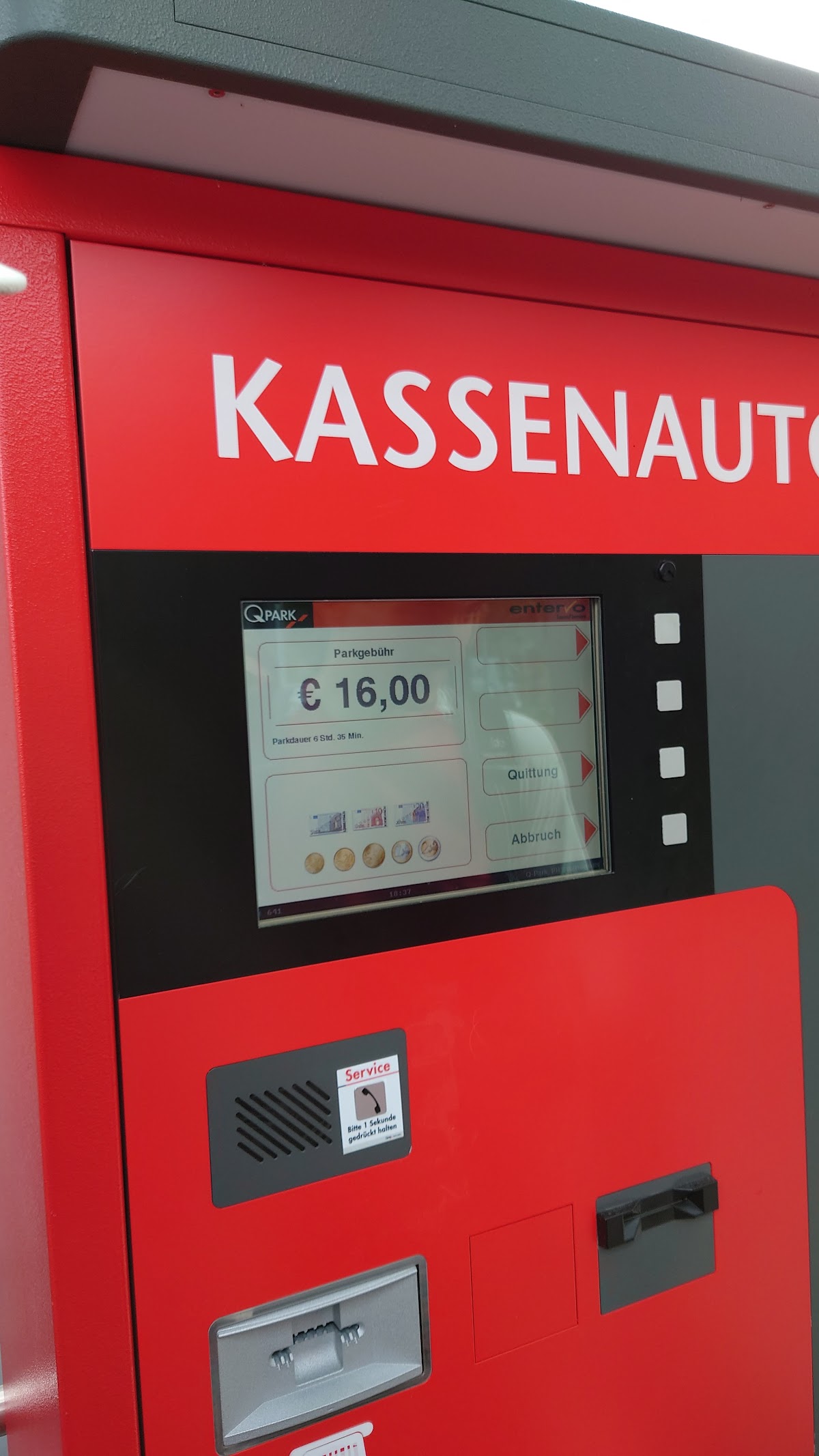 After I had already exceeded the no-parking fine in the multi-storey car park in front of the town hall by paying €13.50, this time €16 was due here.