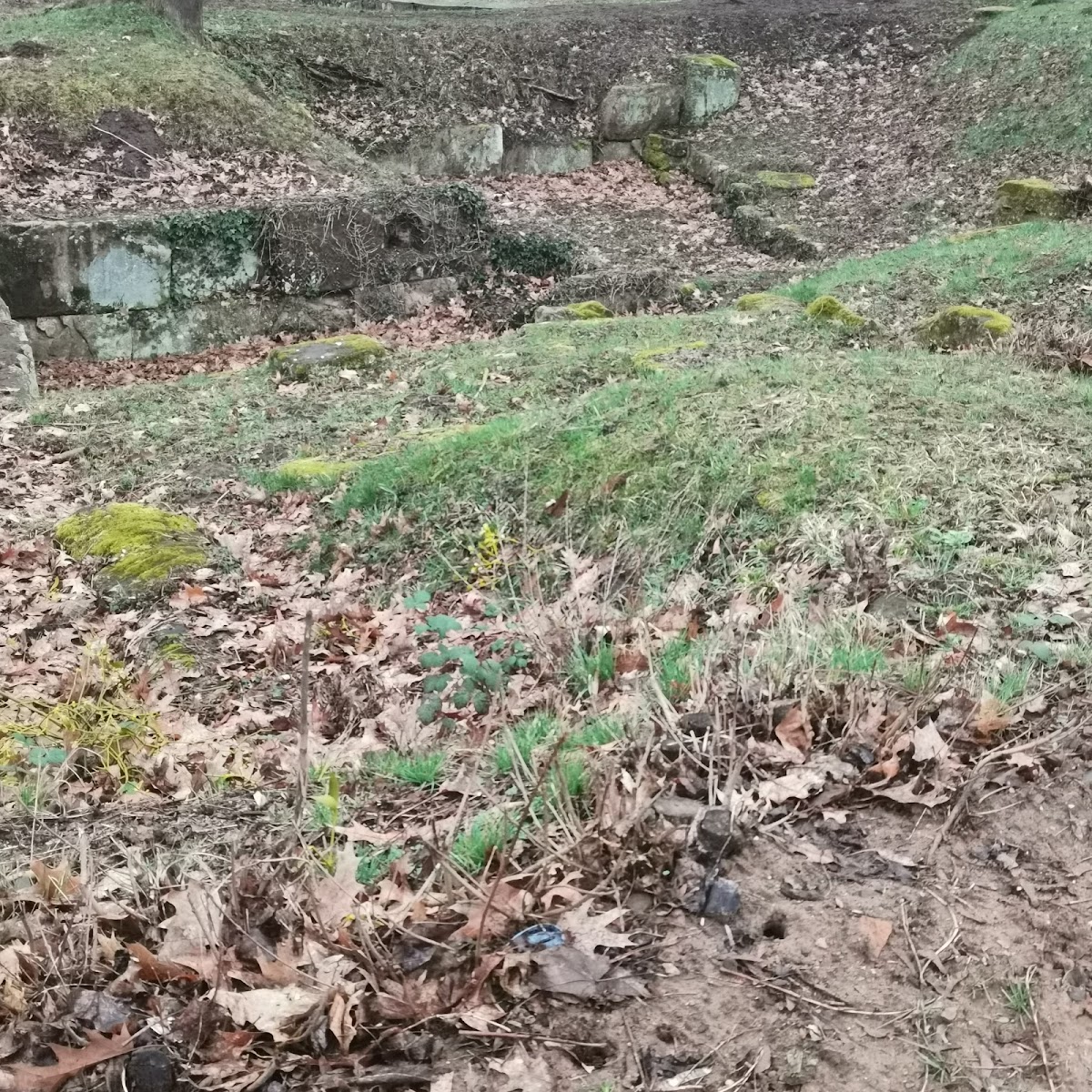 Leider ist das nur noch eine Wiese mit löchern, auch mit gutem Willen ist es schwer was zu erkennen. Wir mehr und mehr zu wildem Klo der umliegenden Gaststätten.