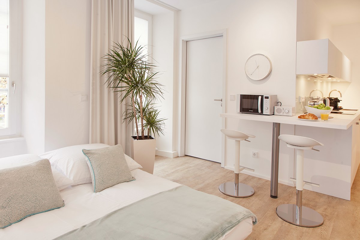 so., hello everyone... we were in the holiday apartment from 04/23/19 - 04/27/19. first impression, great! Then came the problems.. the entire floor in the apartment is so uneven!!! sofa/couch unusable for cozy evenings together in front of the tv. totally uncomfortable, creaks every time you think it's going to collapse.. very high noise level. No oven, fridge way too small. Bed crooked, you keep rolling to the right..!!! no extractor hood... shower is very badly solved. The shower curtain must be placed correctly, otherwise there will be a flood. The tub is far too low. Cutlery and utensils are sometimes too few. but the main thing is advertised with wmf utensils.. a spatula and a ladle.. the rest ikea.. bed from ikea, built crooked and askew.. bedside tables are a joke.. two stools that almost fall apart.. I still have something good . LOCATION ABSOLUTELY TOP!!!! that's the only thing...