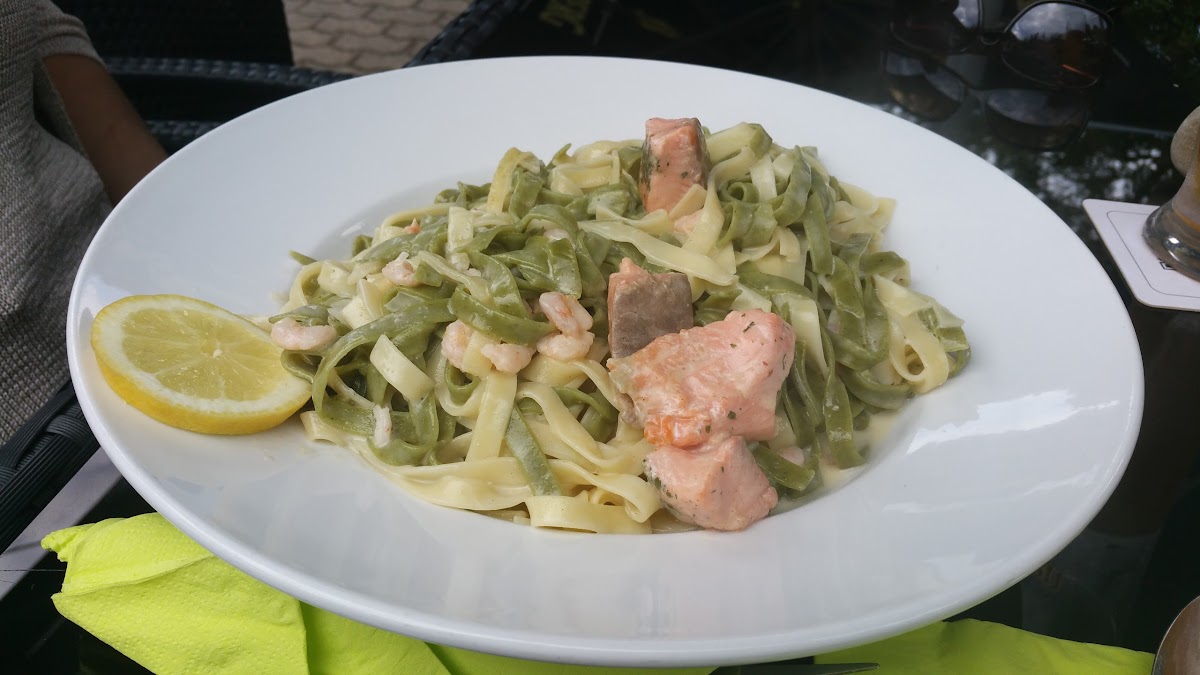 (Translated by Google) It tasted good, but for a salad 15.50 euros, I would have expected at least something fresh. The boss totally unfriendly and not really at the table. I was often and gladly with the previous owner. Now it was my last visit