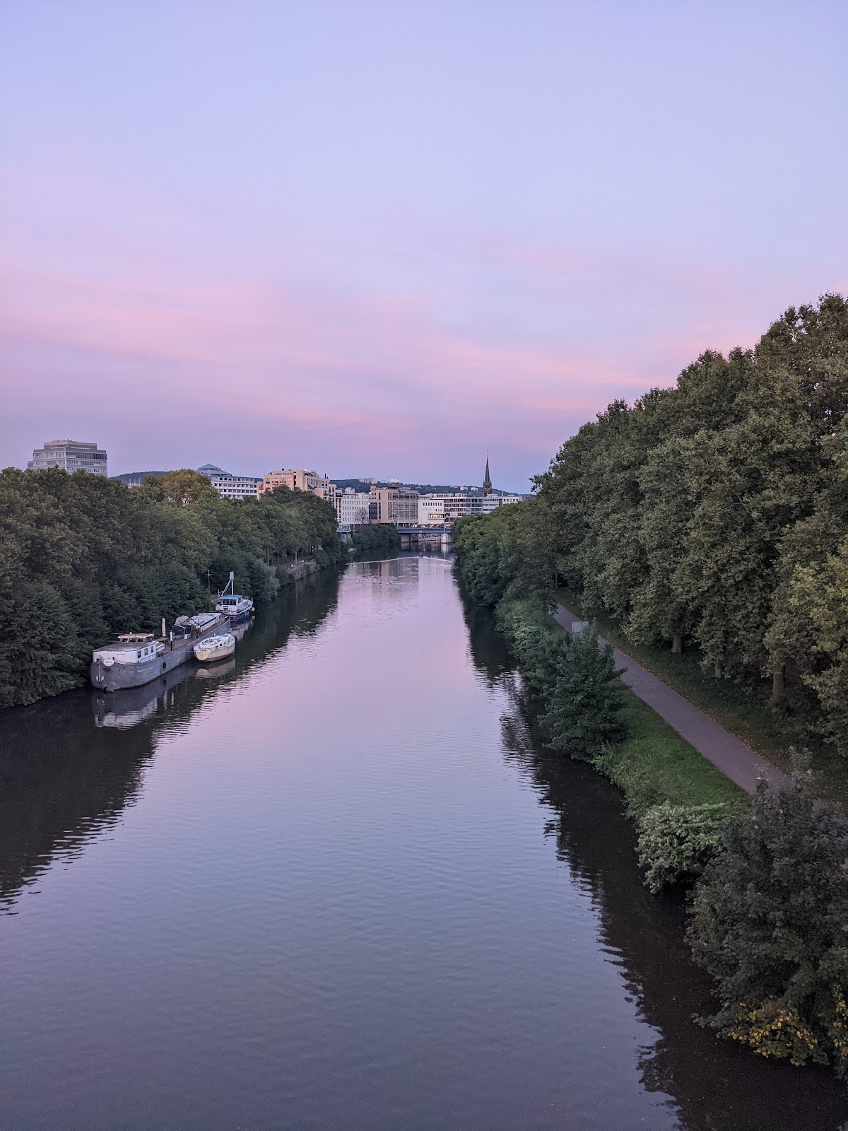 Die Größte und Breiteste Brücke in Saarbrücken. Die Ortsplanung stammt schon aus den 50er Jahren. Der französische Architekt und Stadtplaner G. H. Pingussion hatte die Idee dazu. Darunter liegt der Bürgerpark. Auch ein schöner Ort. Allerdings nur Tagsüber. Bei Dunkelheit sollte man den Park eher nicht besuchen.