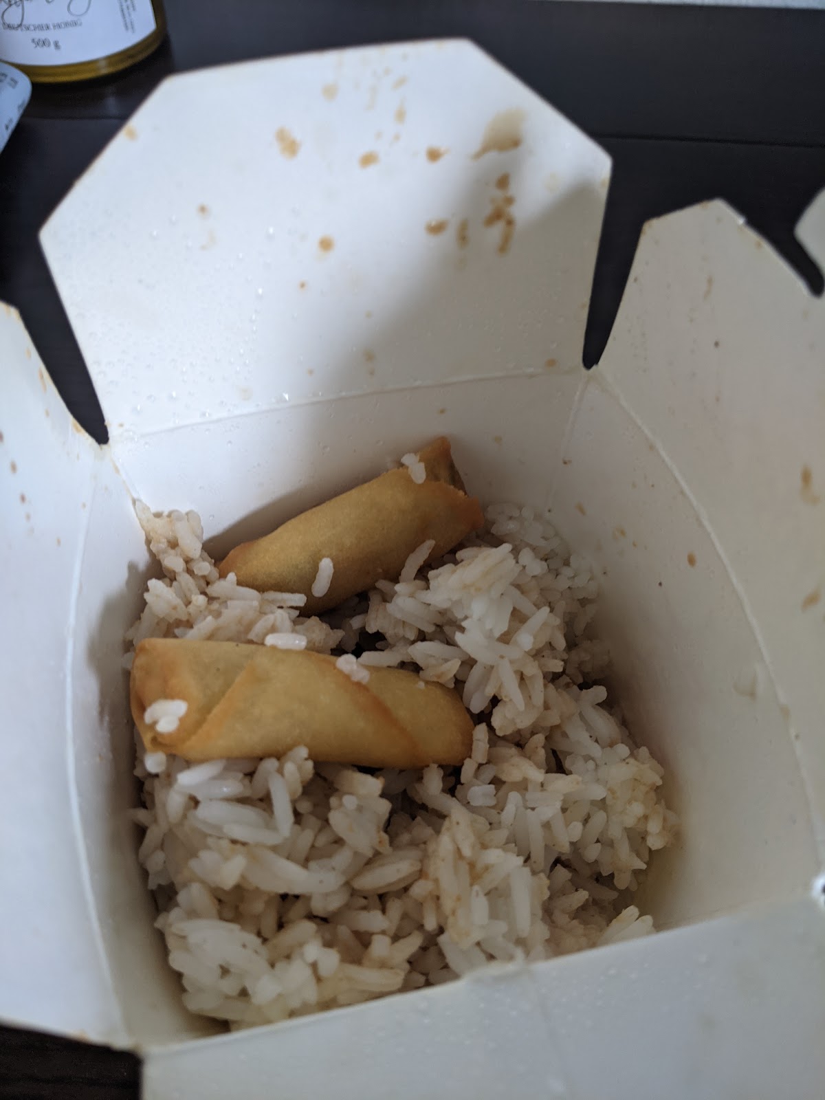 Guess what???? The rice was dry and hard!!!! Nothing can eat except the chiken.