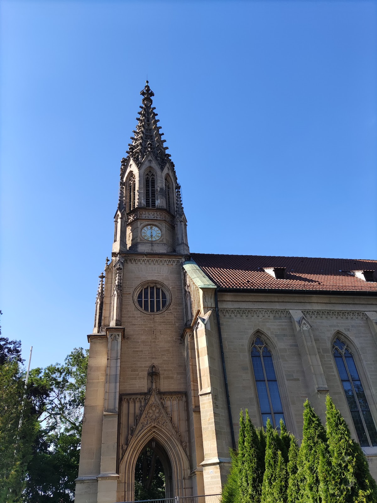 (Translated by Google) The church is small but has a beautiful tower that can be seen from far away. If you walk around the church you have a great view over the roofs of the city and a good sound when concerts are played on the Cannstatter Wasen.