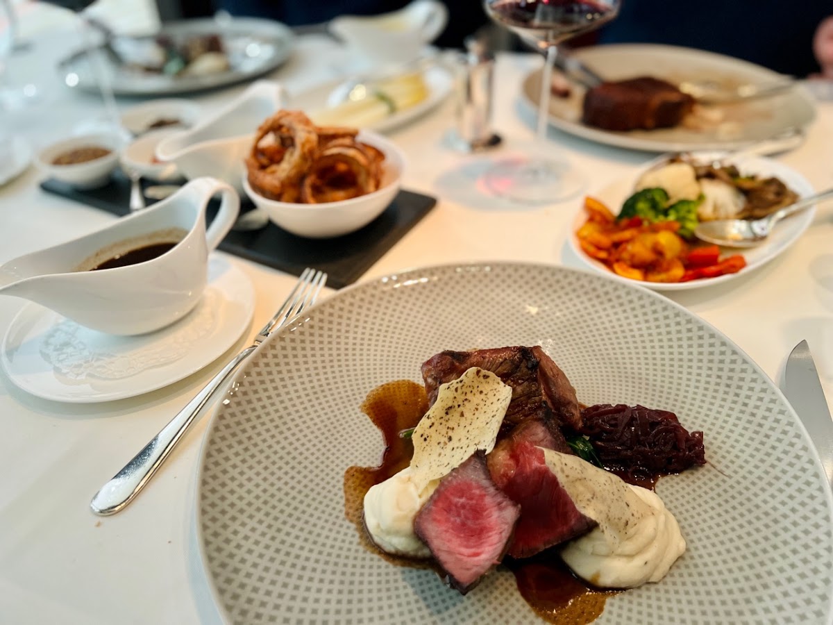 Really good steak, nice wine selection and fascistic service. Not too posh but still high class. They even had cromargan cutlery for people who don't like silver cutlery, which is a big plus. Prices are high, but quality of the food and services match the price! Highly recommended.