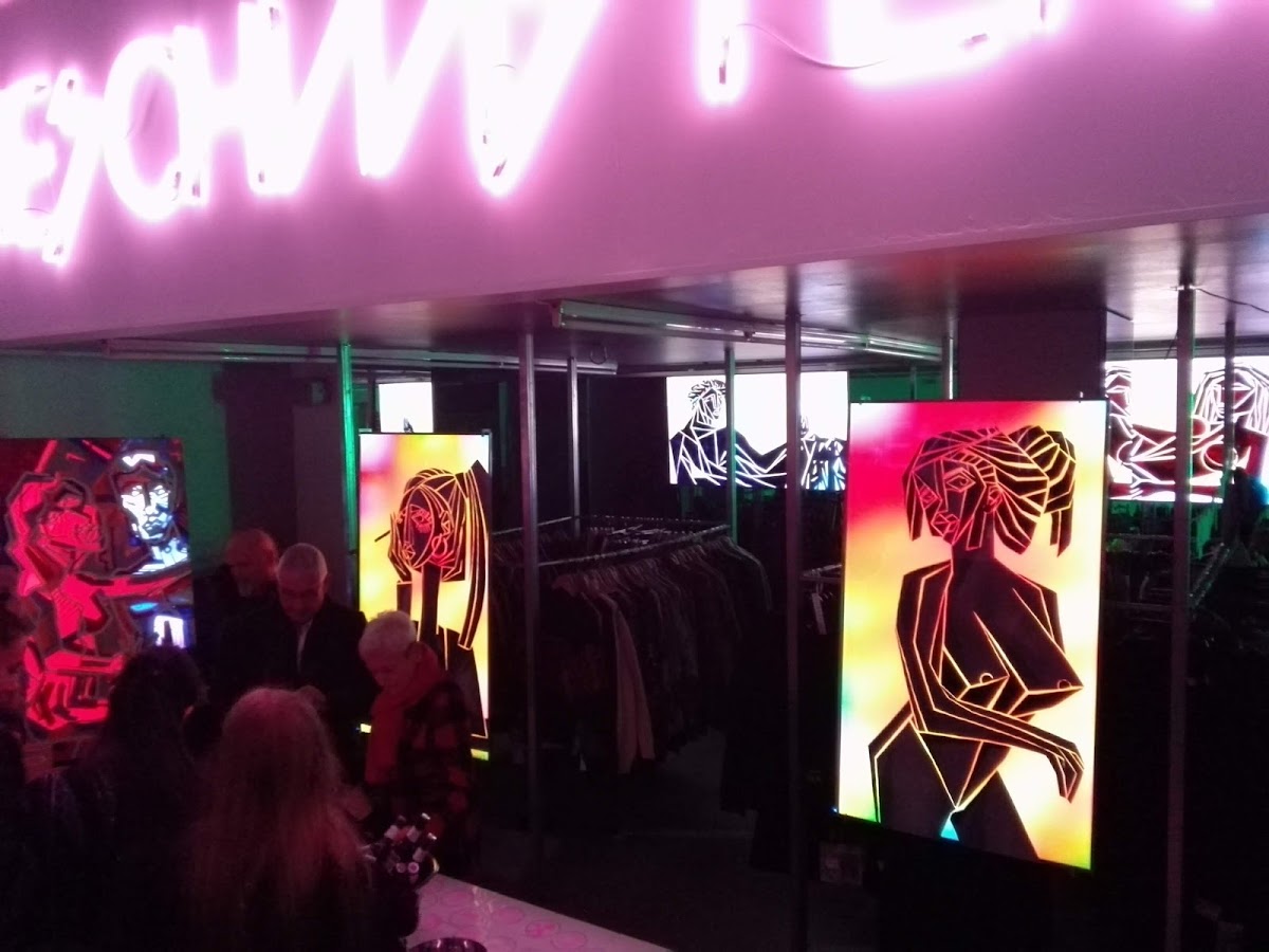 There was a super vernissage by the young artist Jan Georg Hendricks in the siblings' love. He paints on Plexiglas and creates an animation on a screen. The screen is then hung up together with the plexiglass, which constantly creates new impressions of what is being painted.