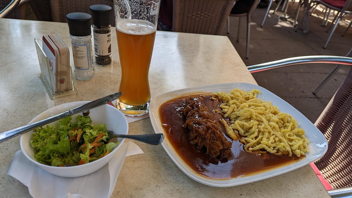 This is quite an oddity. A simple 'Gaststätte' in a quiet East End residential area serving both Greek and local specialties at rock bottom prices (by expensive Stuttgart standards). The interior dining room doesn't have much character, but they have a lovely small garden with just a few tables, which weather permitting, is a lovely place to dine. The food is actually very decent, and for the prices they charge excellent value, both the Greek and the Swabian dishes. The 'Ouzo Teller' is massive, enough for two, especially if you wash it down with a nice 'Hefeweizen'
