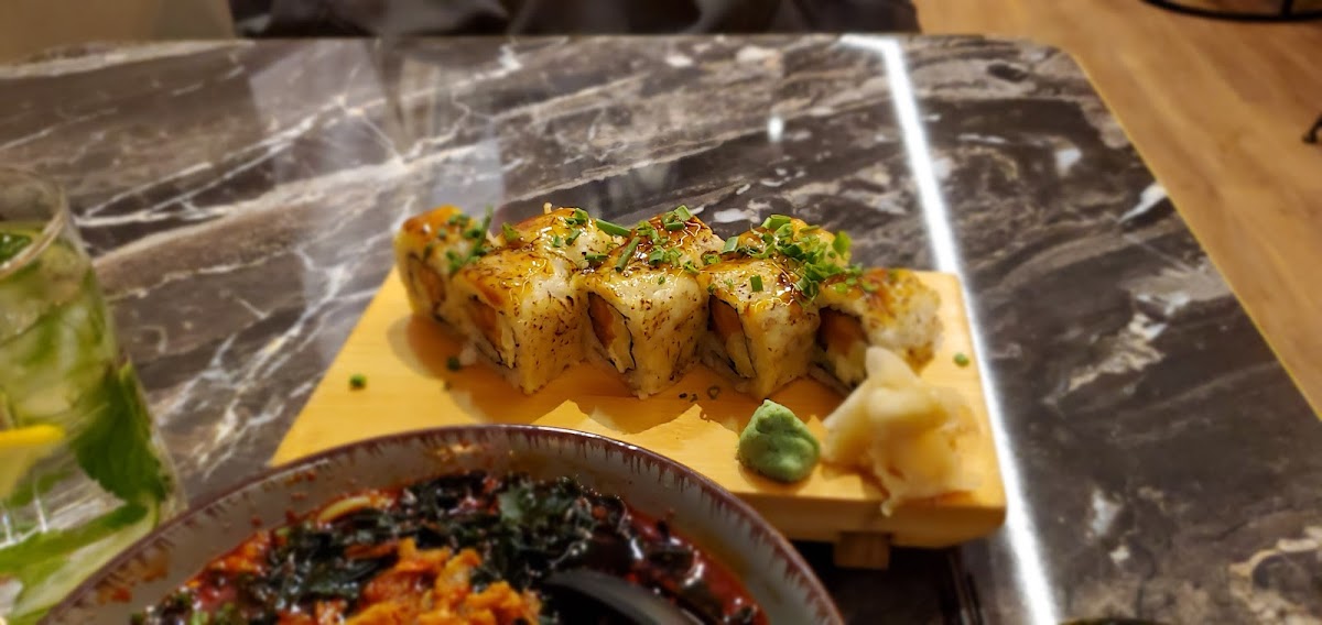 I ordered the Beef Ramen and Parmeasran tuna sushi with a Tokyo Mule. The ramen was pretty good and the fried onions were very nice to a add a bit of crunch. A little spicy but nothing out of control. The only issue was it seemed like there should be more noodles/ramen in the dish. The sushi was creamy and paired very well with the ramen. There was plenty of ginger, cucumber and mint in everything and I loved it.