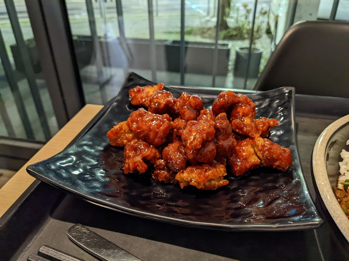 We tried sweet and spicy fried chicken (Dakgangjung), it was very interesting. It was crispy, sweet and a little bit hot.