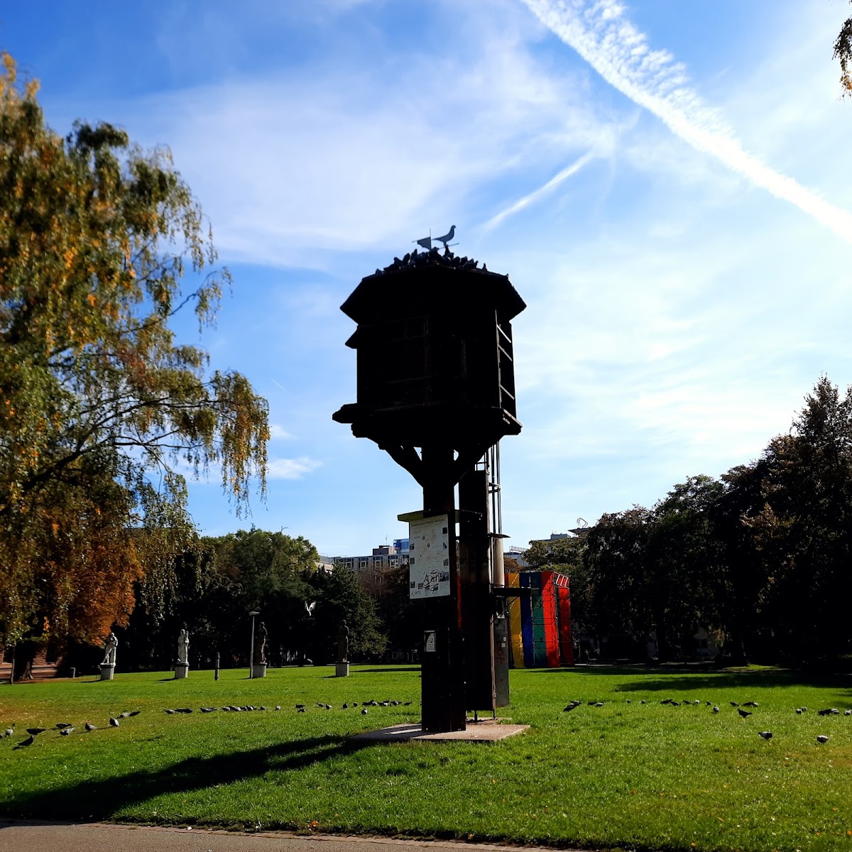 Im Stuttgarter Stadtgarten an der Universität findet man einen Nistturm für Tauben aus Holz. Dieser wurde hier aufgestellt um die Population der Tauben zu kontrollieren. Hier werden Taubeneier gegen Holzeier ausgetauscht. Zum Fotografieren der Schwärme ist es hier gut geeignet.