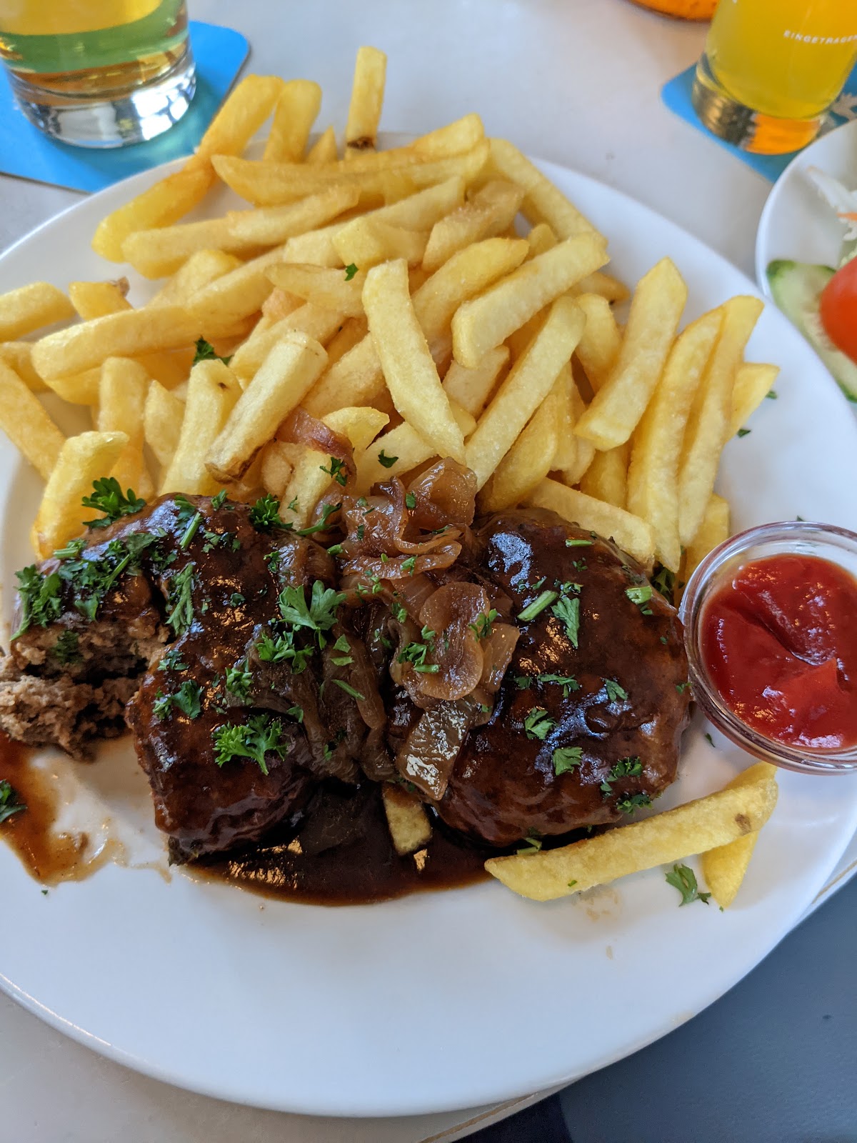 Selected those place before reading excellent reviews and wondered if it would be as good as everybody said. It was better. This place has great service and the best dinner I have had yet in Germany. I had the schnitzel spatzle and the cinnamon pancake with apple sauce for dessert.