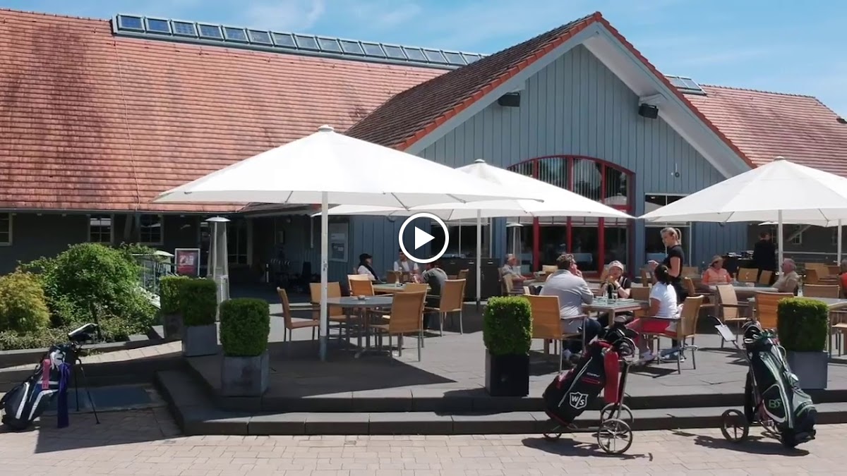Gasthaus im Golfareal. Für alle zugänglich. Terasse und von innen Blick durch sehr große Scheiben auf das schöne Golfareal und Springbrunnen. Sehr hoher Innenraum bis zum Dachgebälk mit interessanter Holzkonstruktion. Essen und Bedienung waren gut!