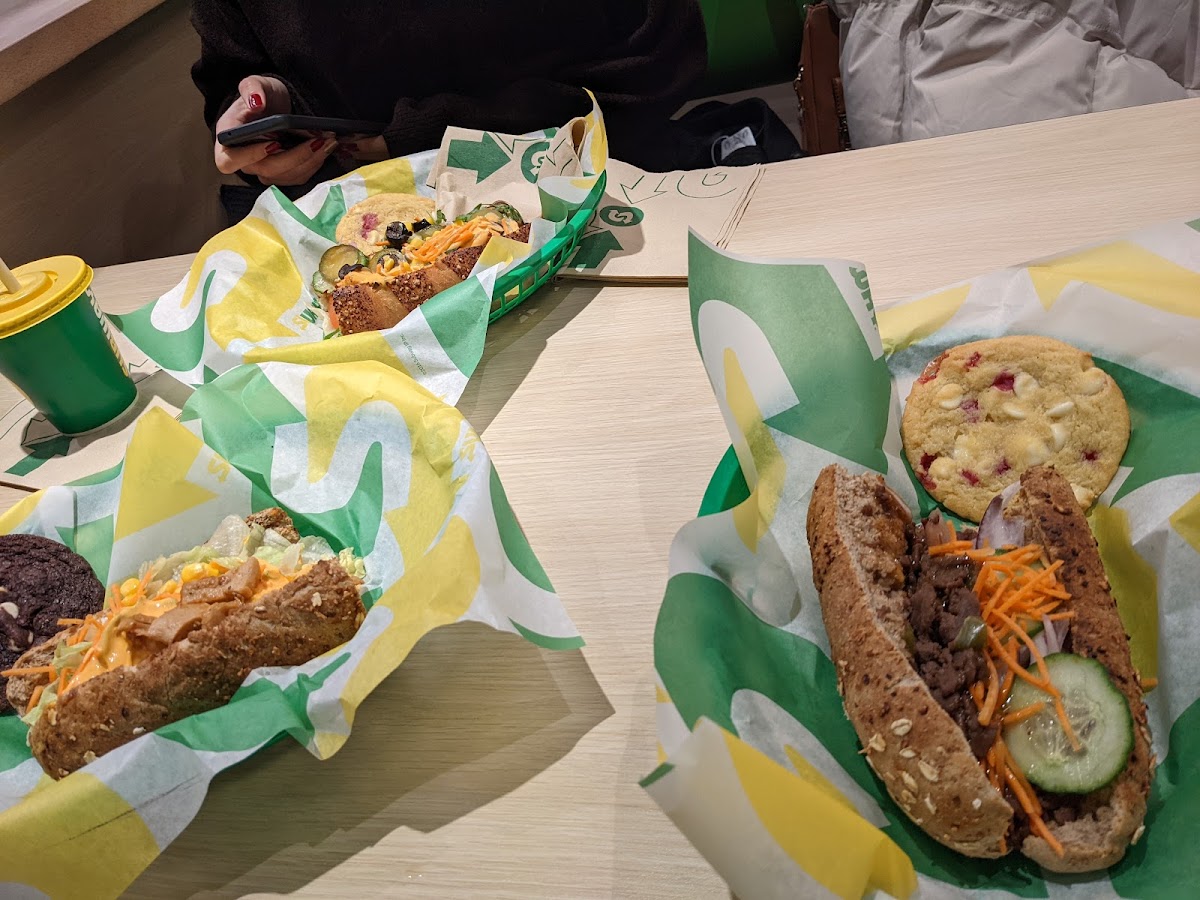 We have been to this Subway very often. Location is central in the city centre but only on foot. Parking is difficult in the surrounding area. The service was fast (although we arrived at off peak time, late lunch). The tables were not clean on this particular occasion so the only reason for a four star review from us.