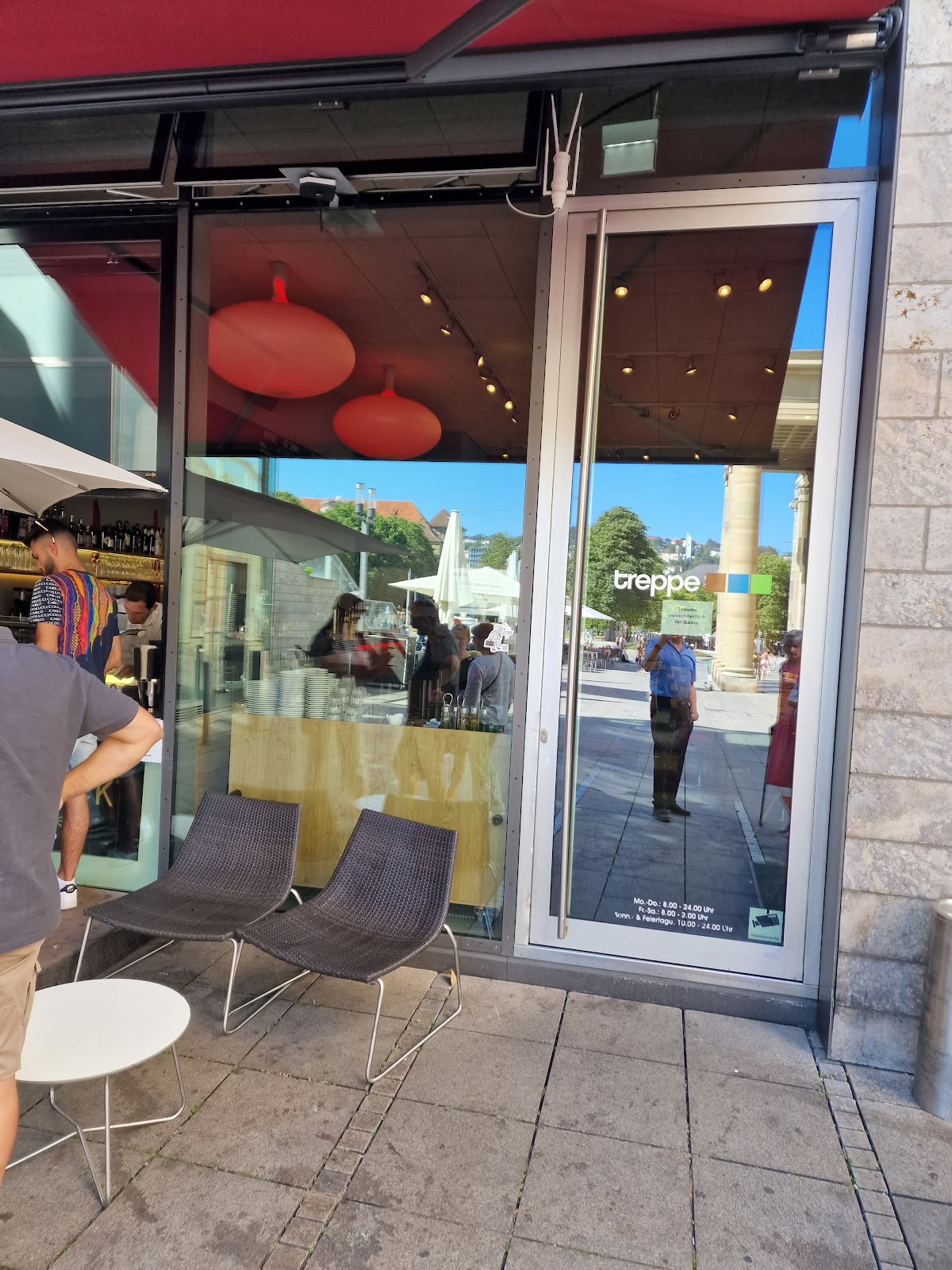 (Translated by Google) What we experienced yesterday in this restaurant was the altitude. Myself and 2 companions had bought Mövenpick ice cream from this restaurant. We then went further forward in the direction of Schlossplatz and sat down at an empty table that belongs to the restaurant. The occupancy of the tables were 95% free. There were almost no other guests at the other tables. As soon as we were seated, the waiter came and said we can't sit here or we have to order something. Then I said we bought the ice cream from them here. Yes, but the prices here at the tables are different and the VAT would be different?! That's why they have to go now. My answer, it can't be that we buy something from them here and then can't stay here, especially since everything is free. So I got up and went to the front of the restaurant and asked for the manager. It wouldn't be there today, was the answer, so I said, ok then I'll write a corresponding recession. This restaurant is definitely not to be recommended, especially since I am also severely disabled and you experience that in Stuttgart! From the way he reacted, I almost doubt whether the employee even has a work permit.