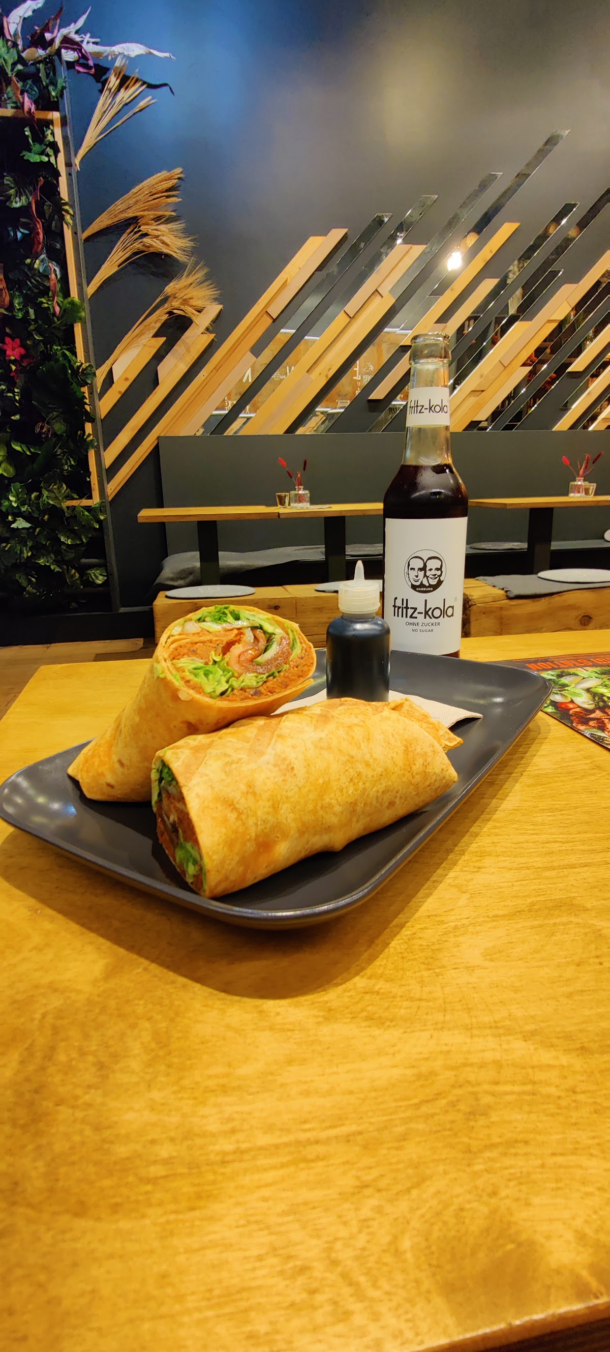 Super delicious vegetarian kofte! Perfectly rolled in tomato favoured wrap with fresh veggies! They give extra sauce to add as you like, something I liked a lot!
