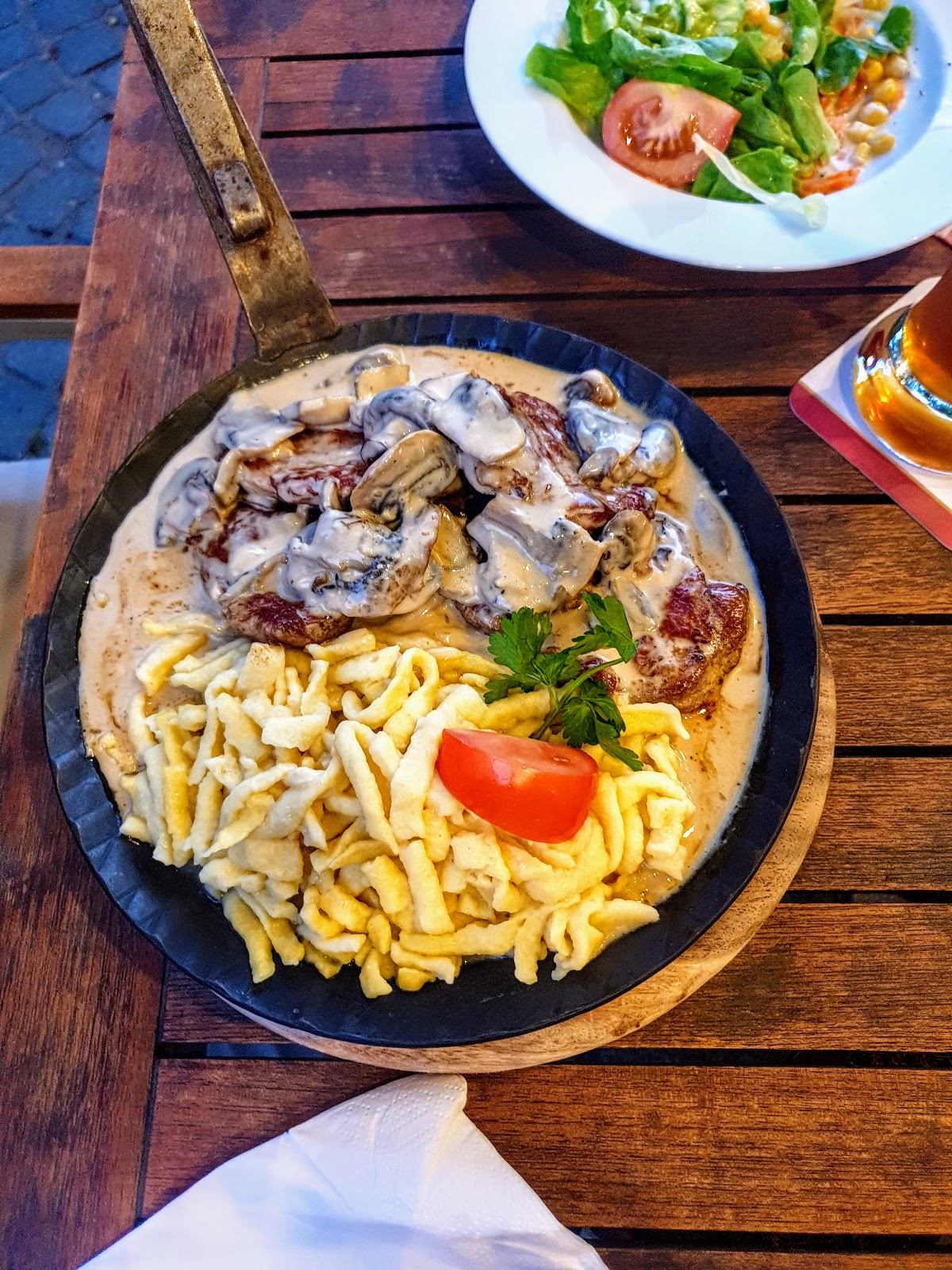 Super friendly service and very cozy atmosphere! Even though my meal „Saure Kutteln“ wasn’t on the evening menu, she still managed to serve me a huge plate of this amazingly delicious meal. I can’t recommend it enough! FYI: they cut down their menu, so some dishes what you see in the pictures of the menu are not offered anymore. But I’m sure you will find great options instead in their extensive menu.