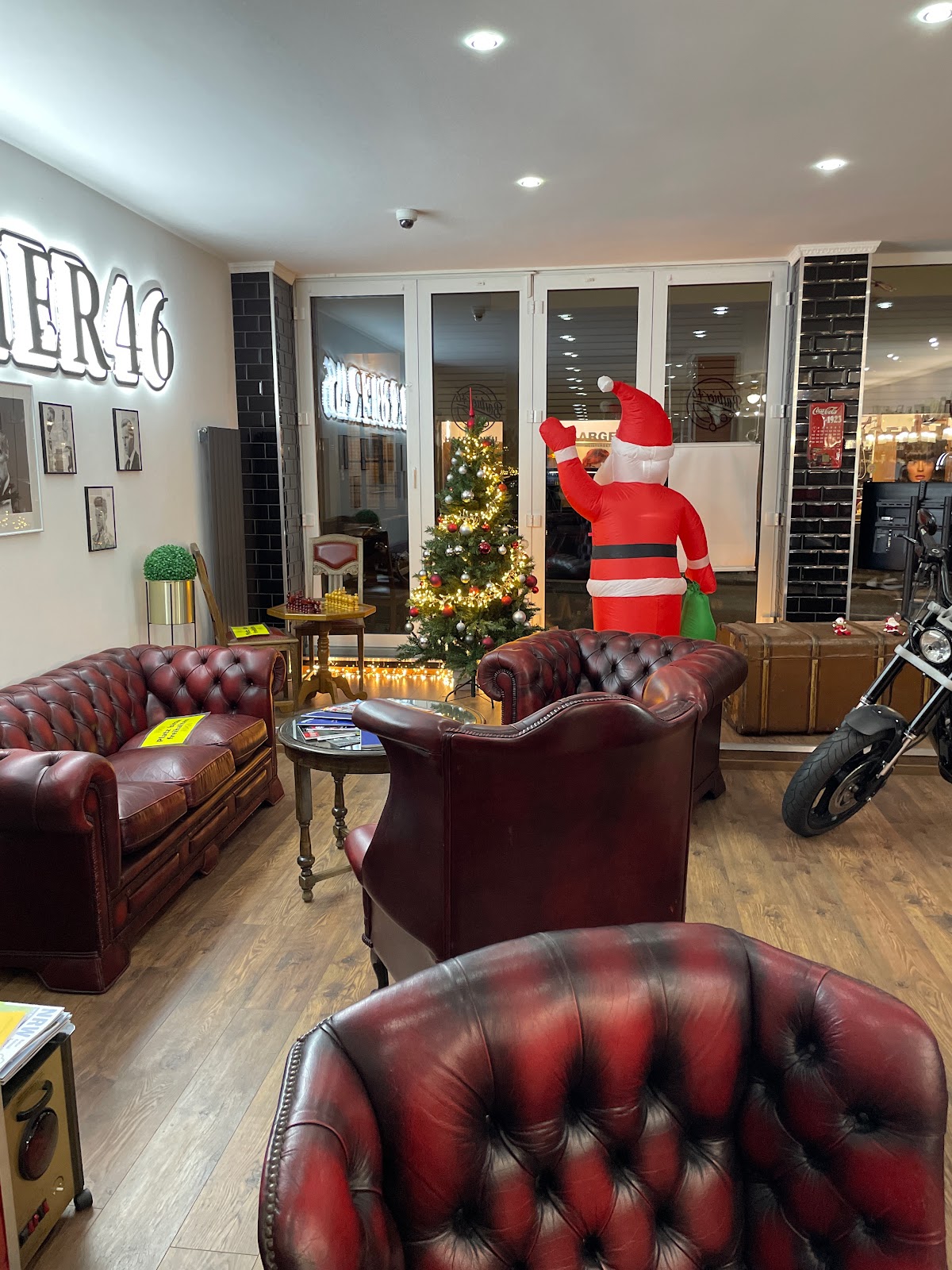 The interior offers some Rockabilly-Vibes with nicely cushioned leather armchairs etc.