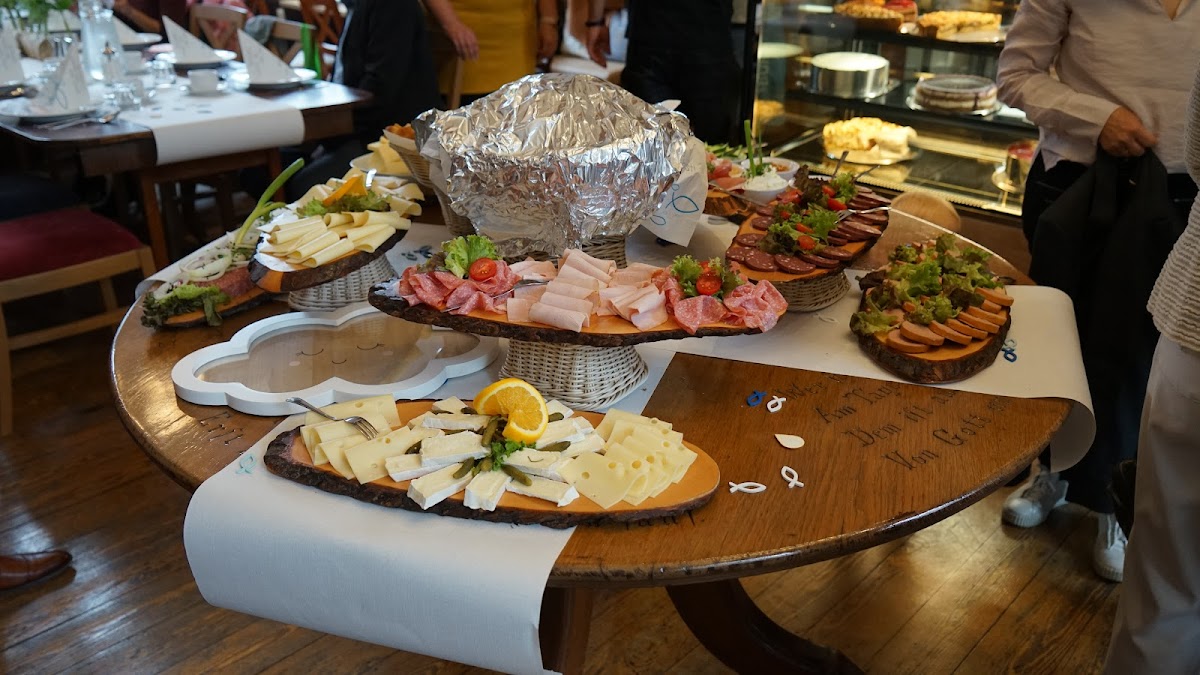 On September 20th, 2022 we had a celebration with 20 people. The team around the managing director Miriam Margherita prepared a separate part of the café for us with lovingly set tables. There was a rich fresh soup, Born walnut baguettes and later cake, all prepared with love (photo baguette plate). Although the café also had "normal" café guests, we never felt disturbed or disturbed.