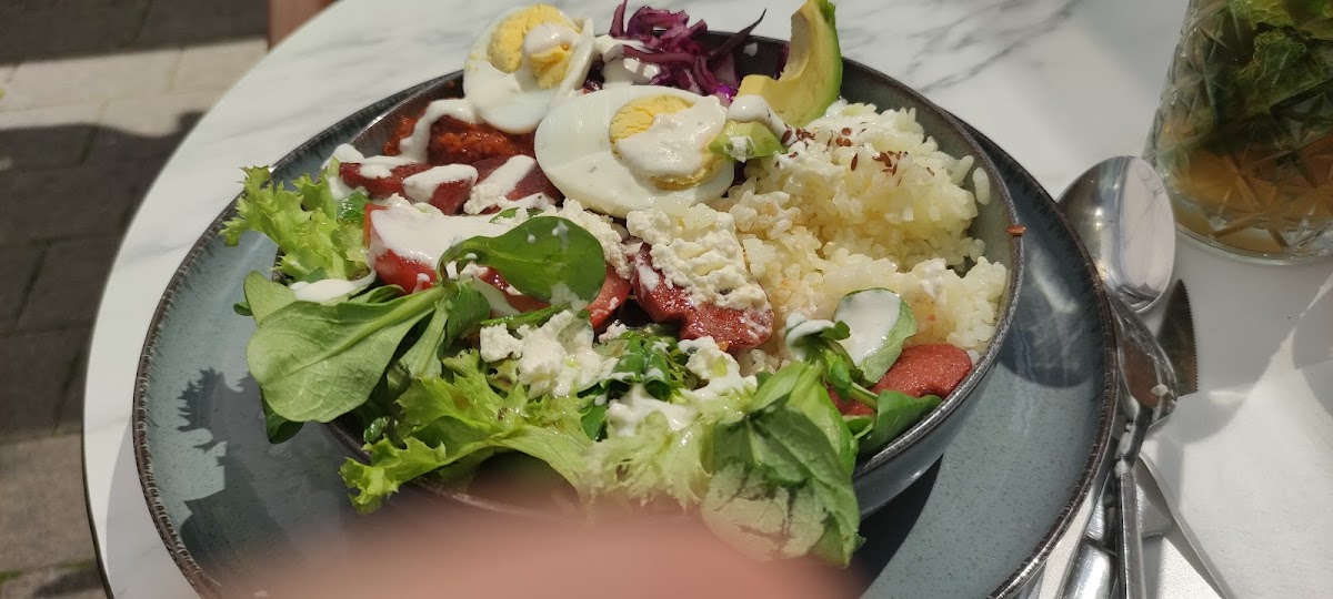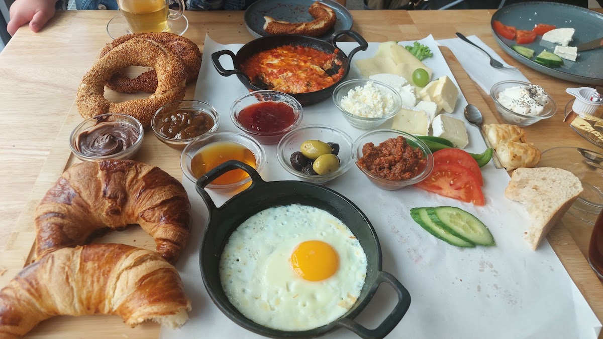 The ambiance of the place is very nice! Nice place to hang out with friends or family. The menu is well designed and includes breakfast, brunch meals along with good range of Turkish desserts, pastries and coffees. The foods also tastes amazing. We tried the vegan options and they are the best. The only drawback was there was only one waitress on the second floor which made it really time consuming to ask for anything. We had to wait for a longer time each time we wanted to make an addition to the order or ask for something or pay the bill. Otherwise everything was really nice.