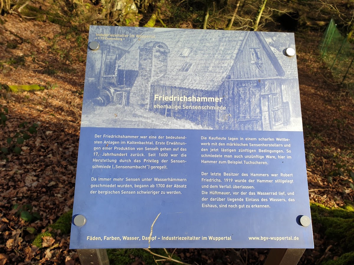 (Translated by Google) Ruin of a former scythe smithy in the Kaltenbach valley. Listed today. A beautiful place of industrial history in Wuppertal-Cronenberg. Located on a hiking trail and is therefore always "open"
