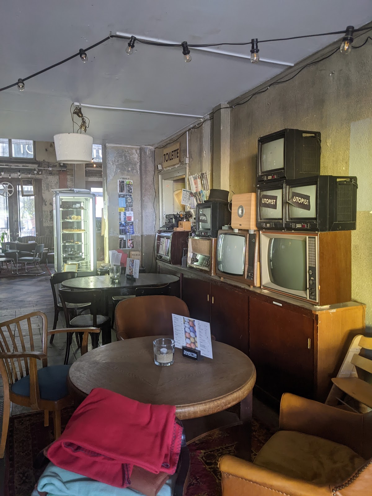 Alternative bar in old station, some good bottled beers, cool interior, nice terrace on the cycle track (Nordbahntrassen).