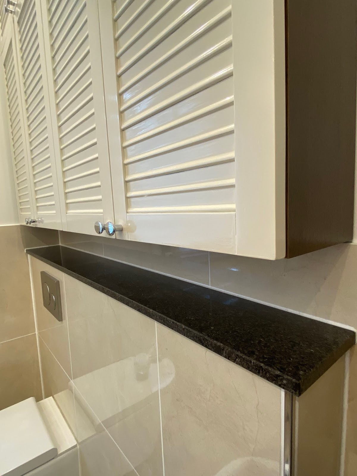 Das Material für die Bäder war schnell ausgesucht - Café Imperial: ein tiefes dunkles graubraun - und die Platten wurden nach unseren Skizzen passgenau angefertigt.