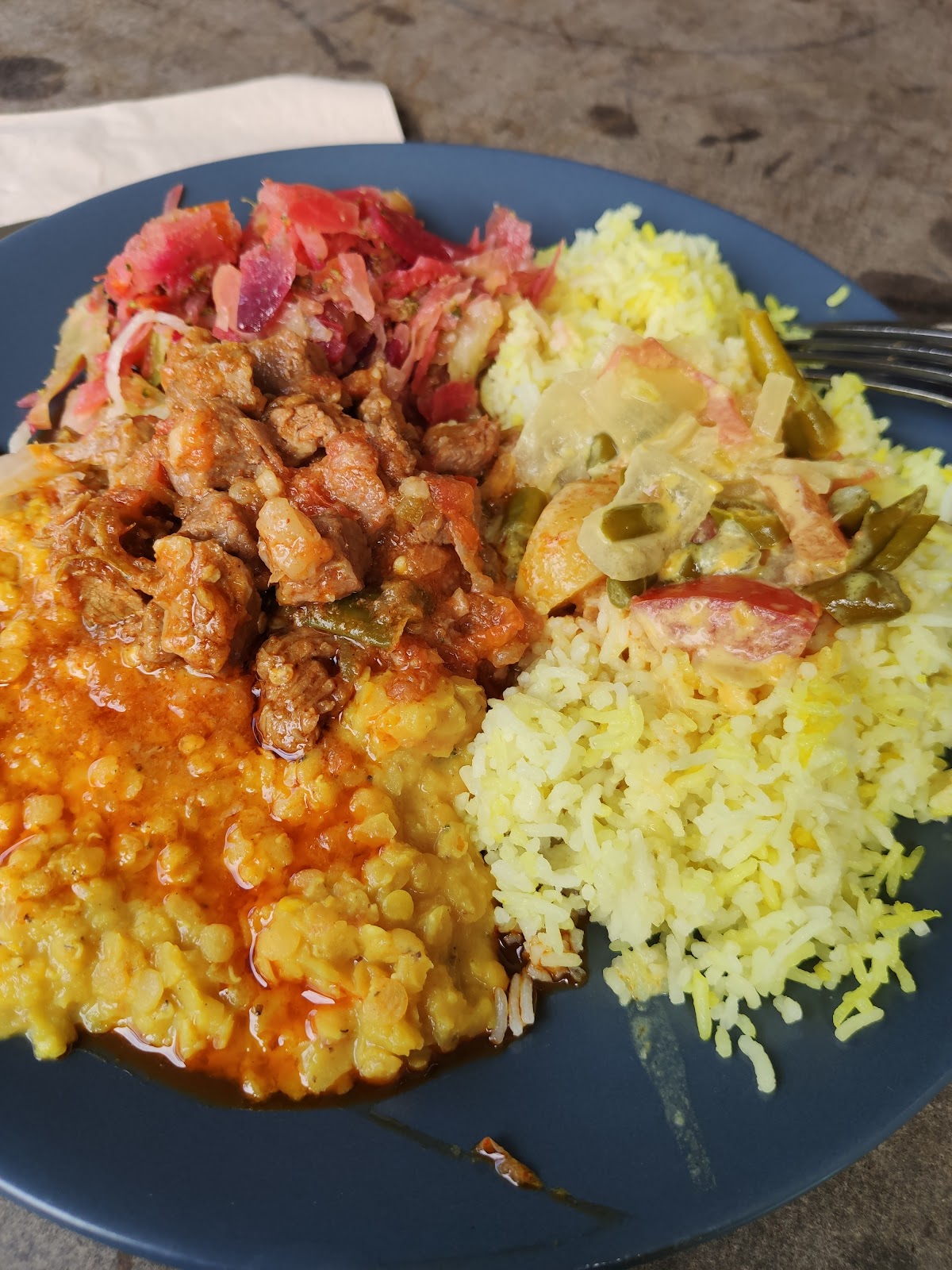 Mariadas is a Sri Lankan food stall run by a super chill and friendly guy called Benny. You can have a Sri Lankan curry here with chicken, beef, lamb or vegetarian, and if you like, it’s very spicy. Honestly some of the best curry I’ve had. And Benny really is a cool guy, he’s always friendly and he’s even give me a free drink or free chilli peppers a couple of times.